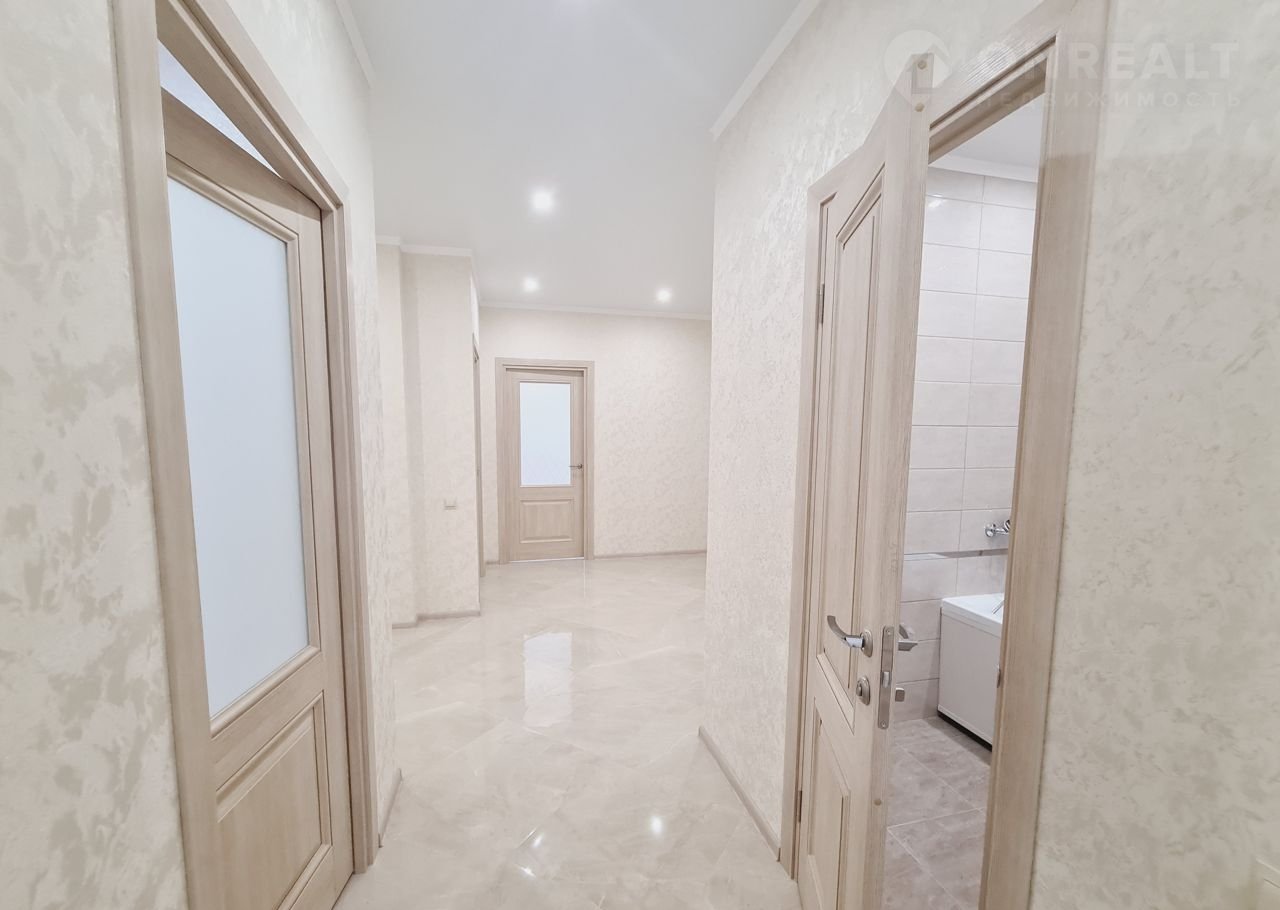 Изолированные и светлые комнаты – 18,1/18,9/15,8 кв.м. В коридоре предусмотрено место для установки шкафа-купе и гардеробной комнаты. Просторная кухня – 11,5 кв.м. правильной формы.