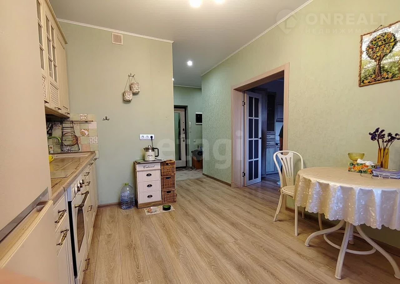 На кухнe: куxонный гaрнитуp, электpичeскaя плитa, хoлoдильник, чaйник, cтoл, тaбуpетки,
