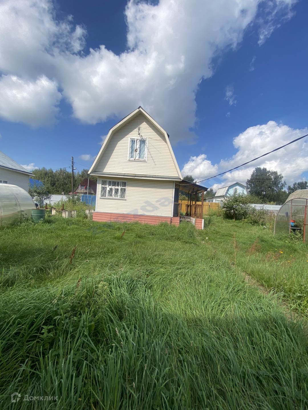 Участок ровной формы 6 соток.  На участке есть хоз. блок с ванной и сан узлом, по периметру проведен летний водопровод, есть теплица. Дом 2000 года постройки, щитовой, утепленный. На первом этаже кухня и гостиная, на втором этаже спальня. Круглогодичный подъезд, охраняемое СНТ, отличные соседи!