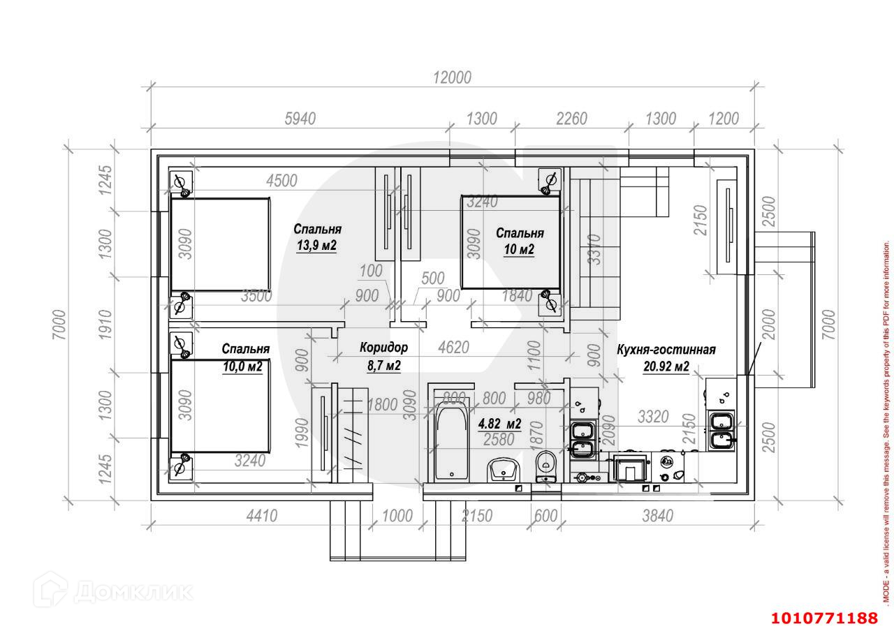 Проект 7х12 с тремя спальнями. Рассмотрим все виды оплаты! Код объекта: 1010771188.