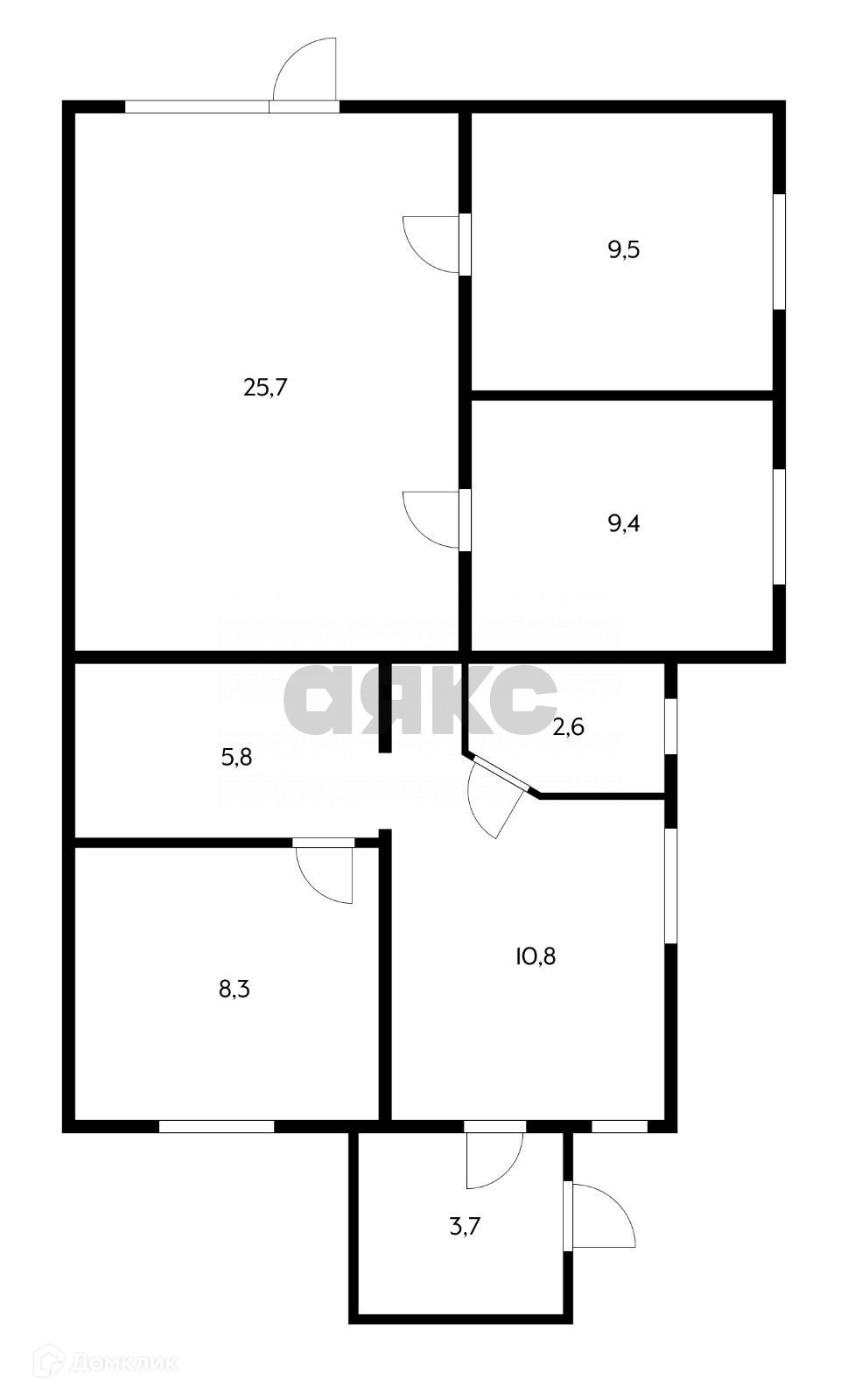 Жилая площадь 58.7 м2