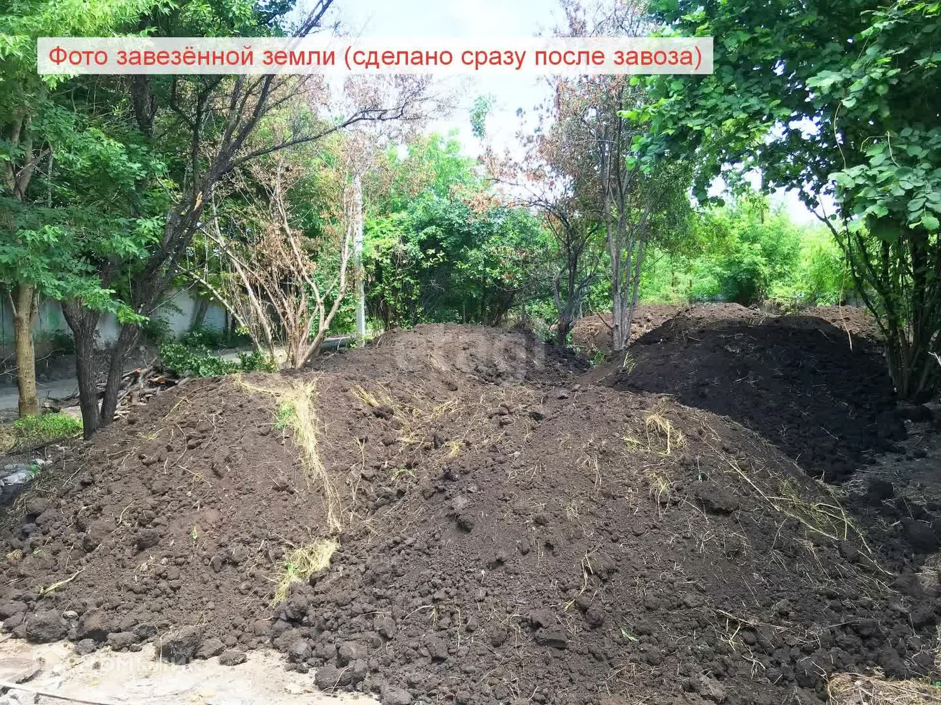 На участке уже завезена черноземная почва - 40 Камазов, земля ещё не разровняна, лежит горками, это позволит ровнять её согласно вашим планам. Кроме того, на участке растут фруктовые и ореховые деревья!