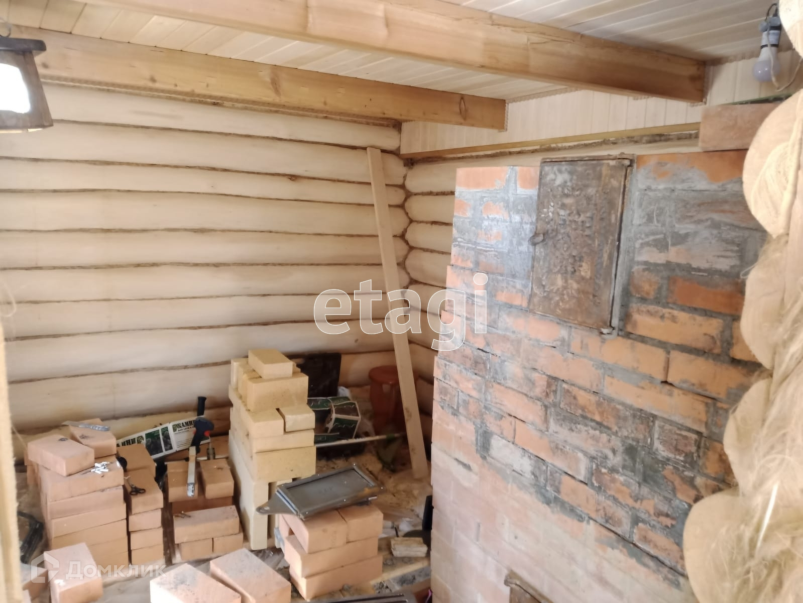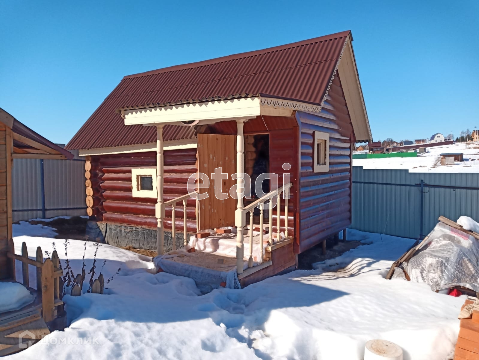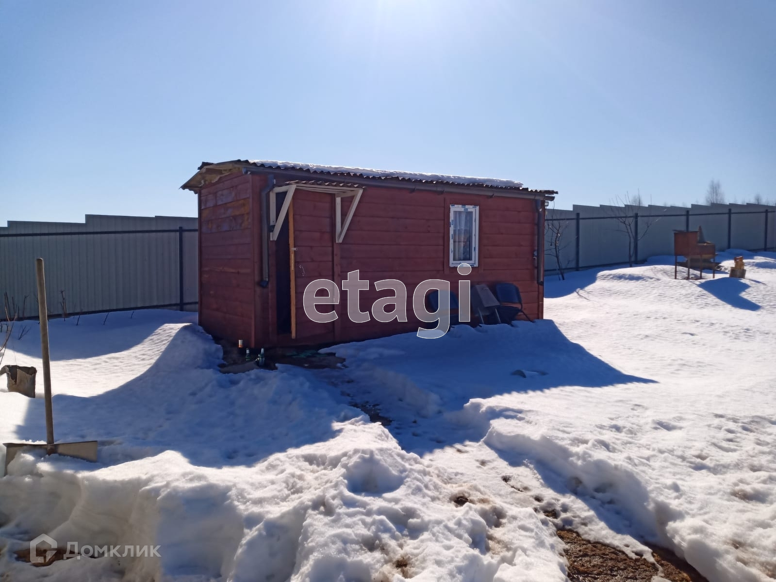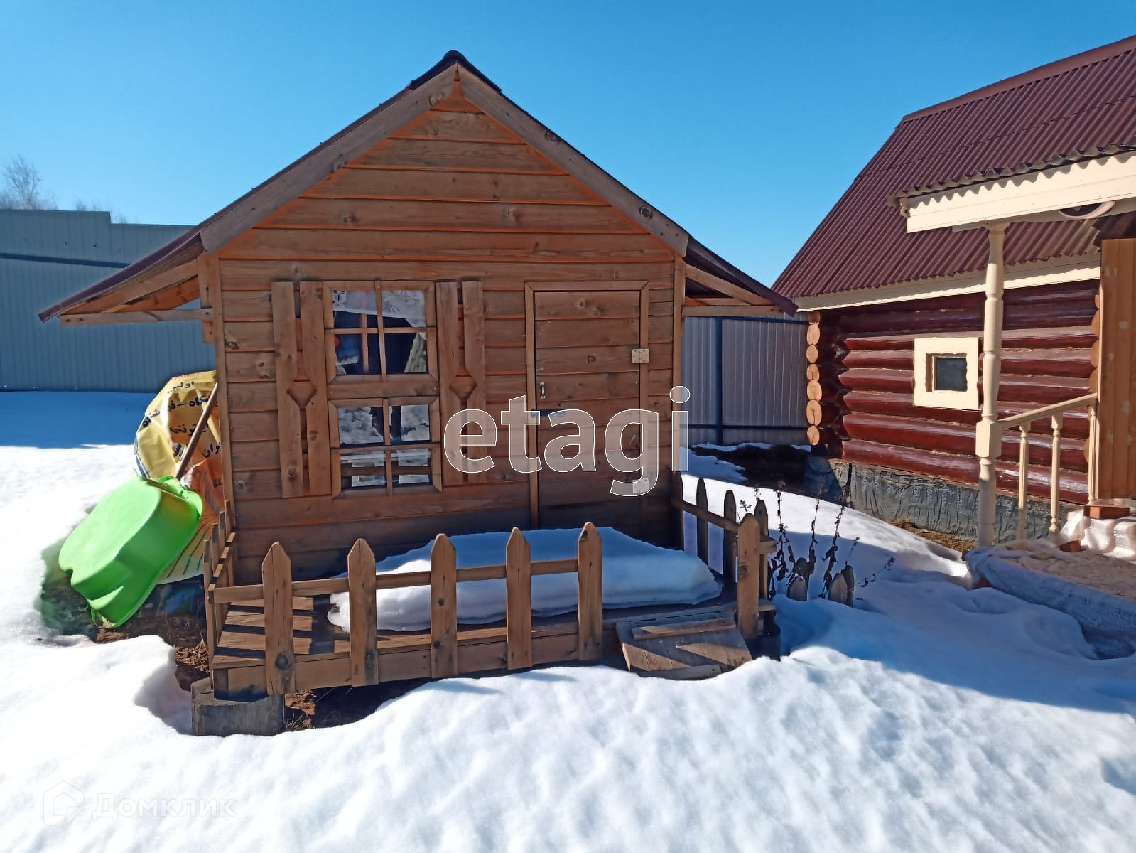 На участке рубленная баня из липы с каменной печью, детский домик, бытовка.