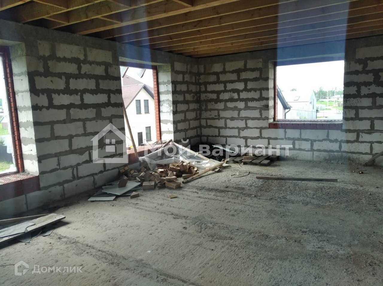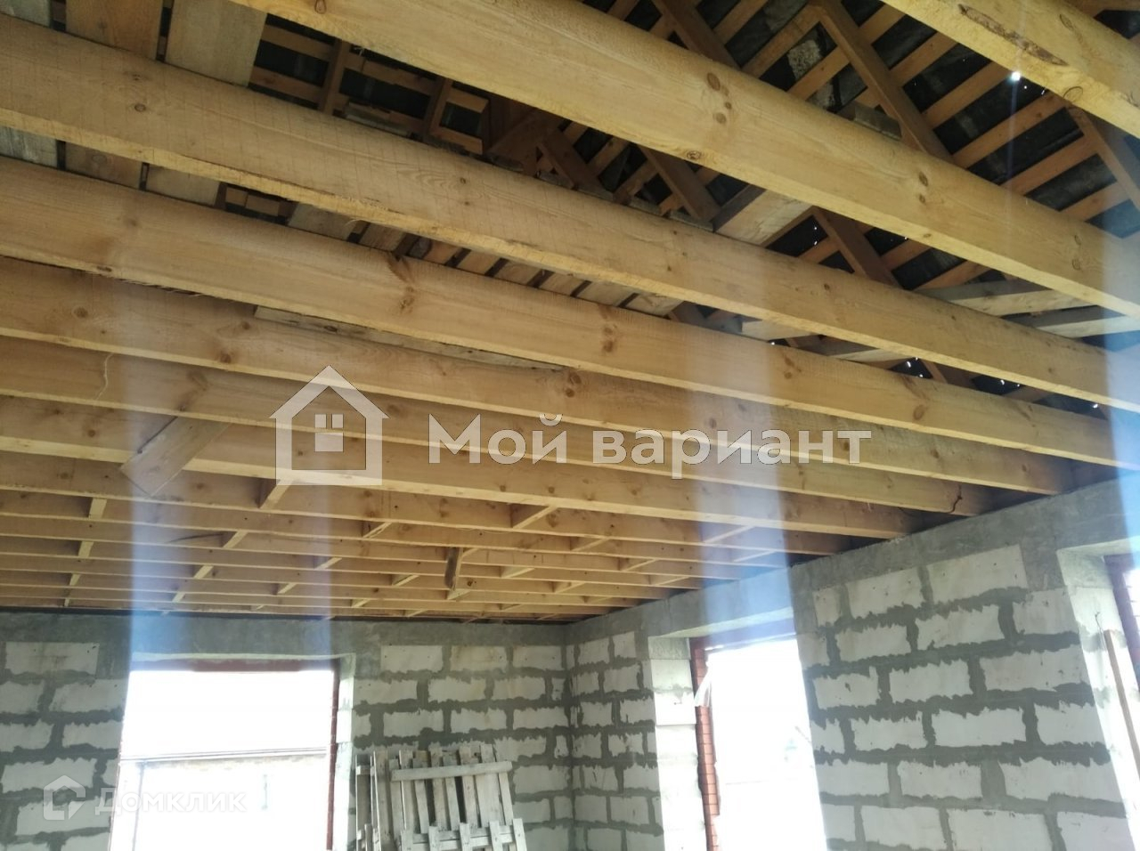 Перекрытия над техническим и 1 этажами - ж/б плиты, перекрытие над 2 этажом - деревянные балки, крыша — стропильная система с временной кровлей из рубероида (вальмовая кровля), высота 1 этажа - 3.15 м, высота 2 этажа 2.7 м, возможность обустройства мансарды.