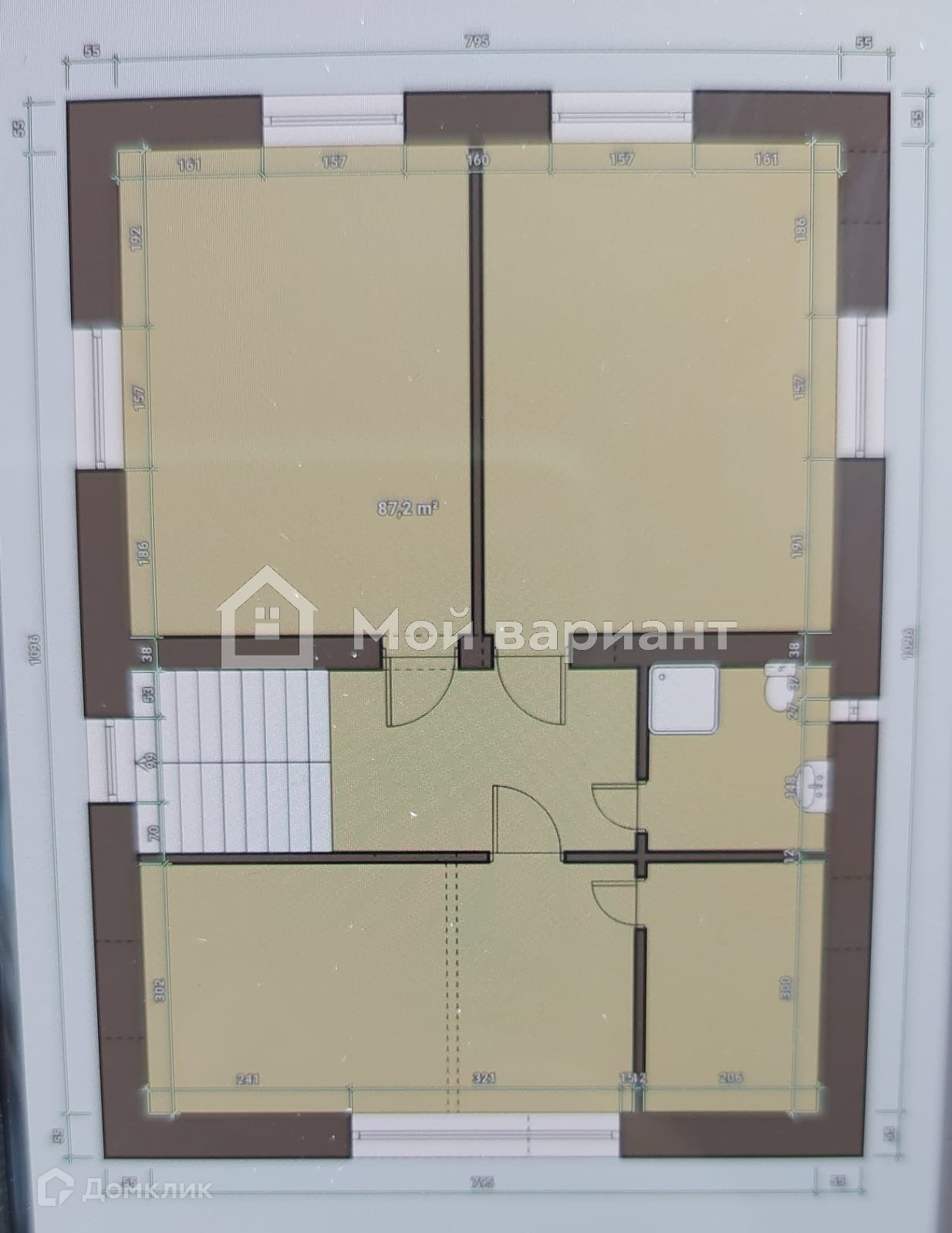 На 2 этаже планировались 3 спальни и санузел, на данный момент имеется только несущая стена посередине коробки из керамического кирпича толщиной 0.38 м, остальная планировка свободная.