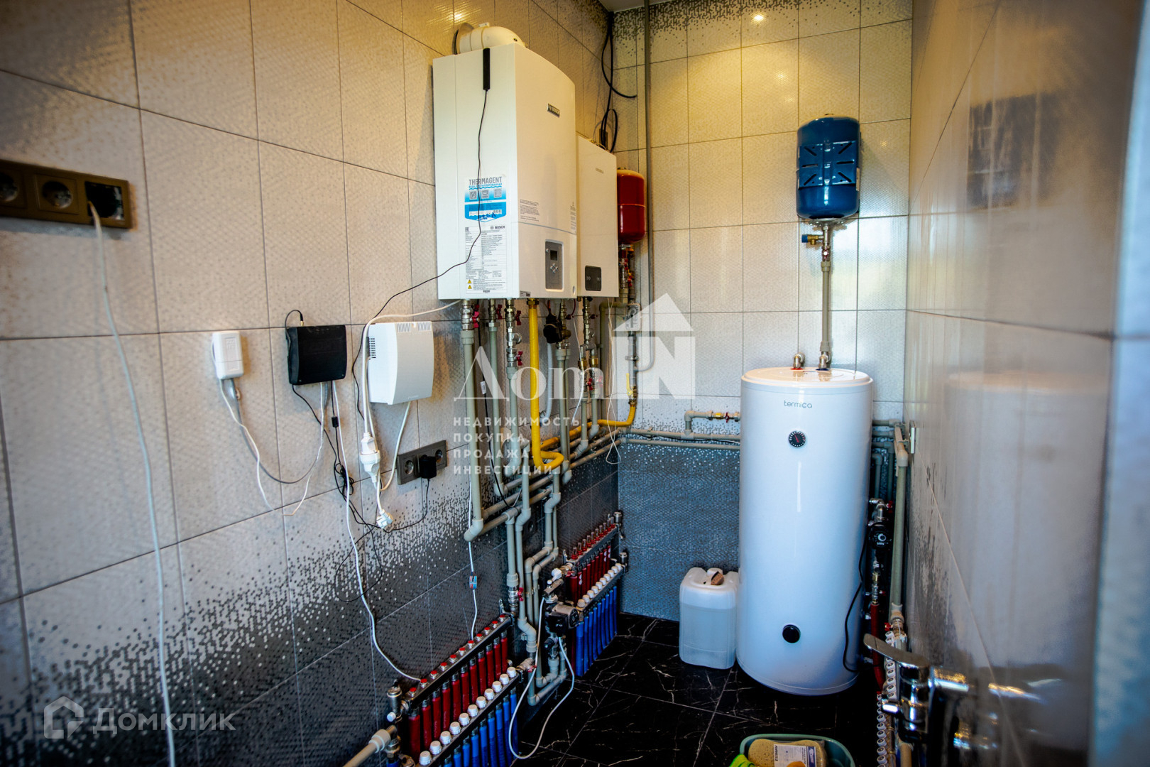 Котельная - котел газовый Воsсh 24 кВт и резервный электрический Аrdеriа 12 кВт, теплые полы (во всех помещениях с керамогранитом), в комнатах паркетная доска, отопление радиаторы.