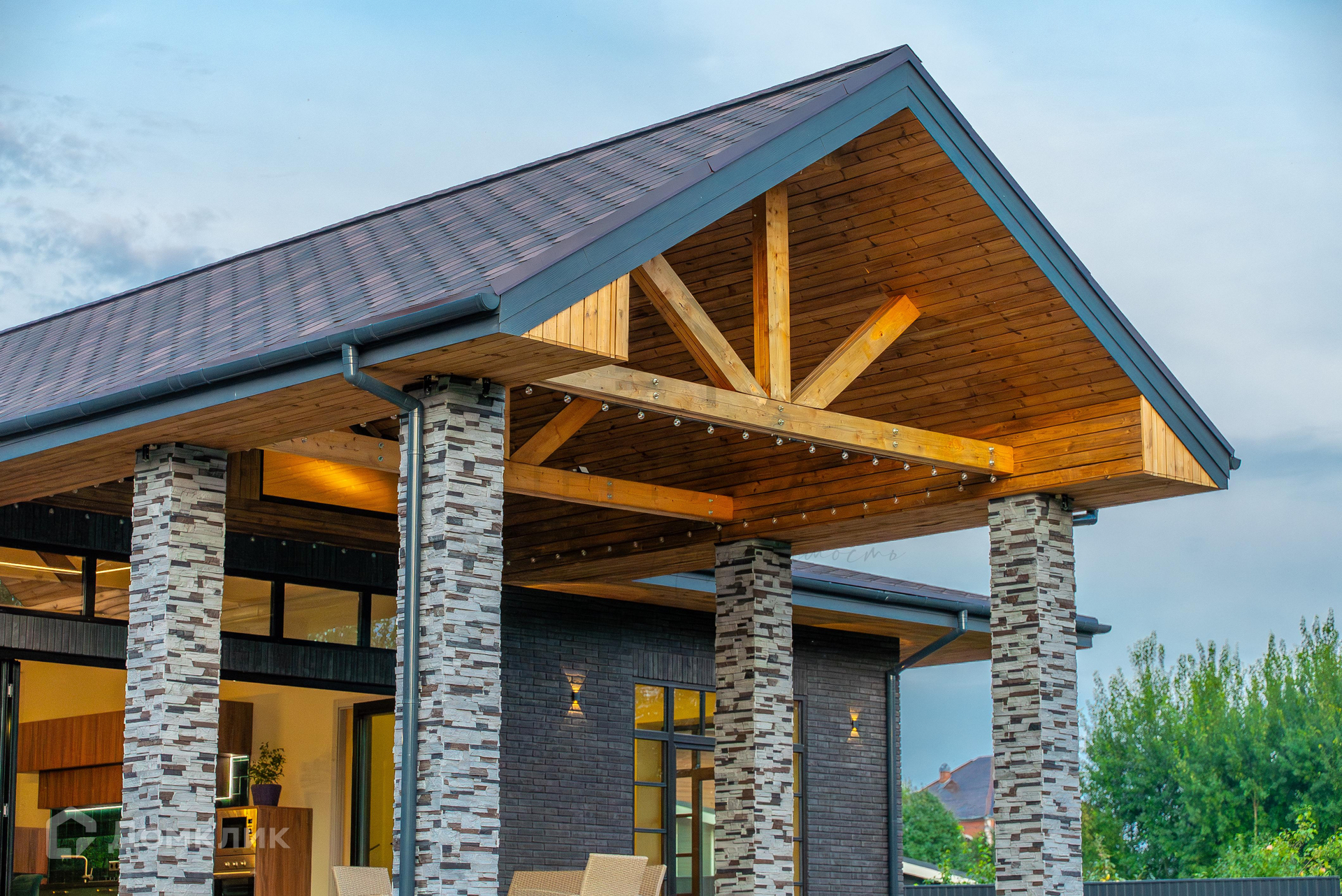 Кровля – гибкая черепица с утеплением. Установлена водосточная система.