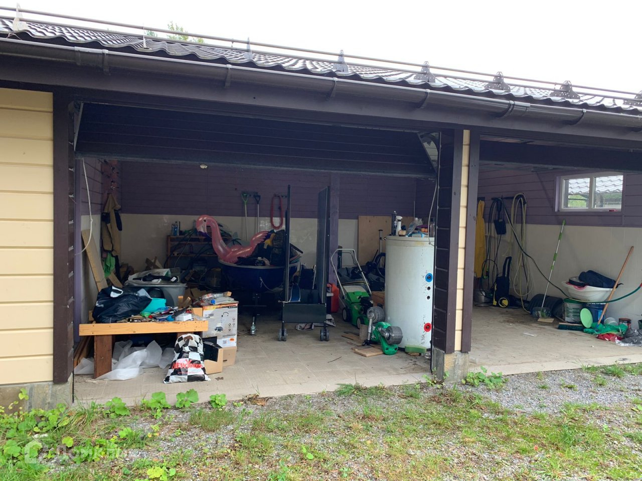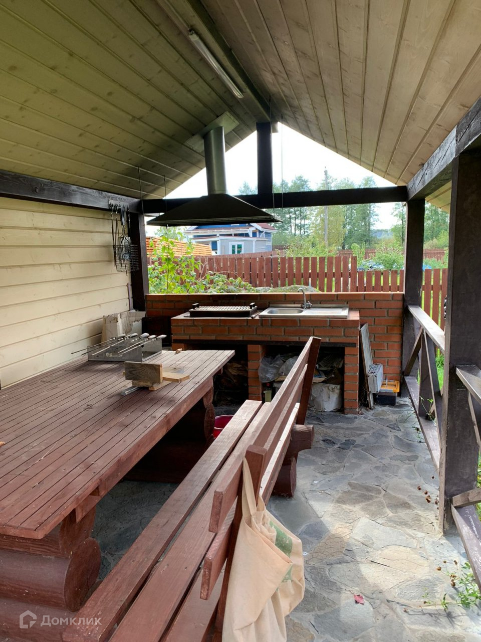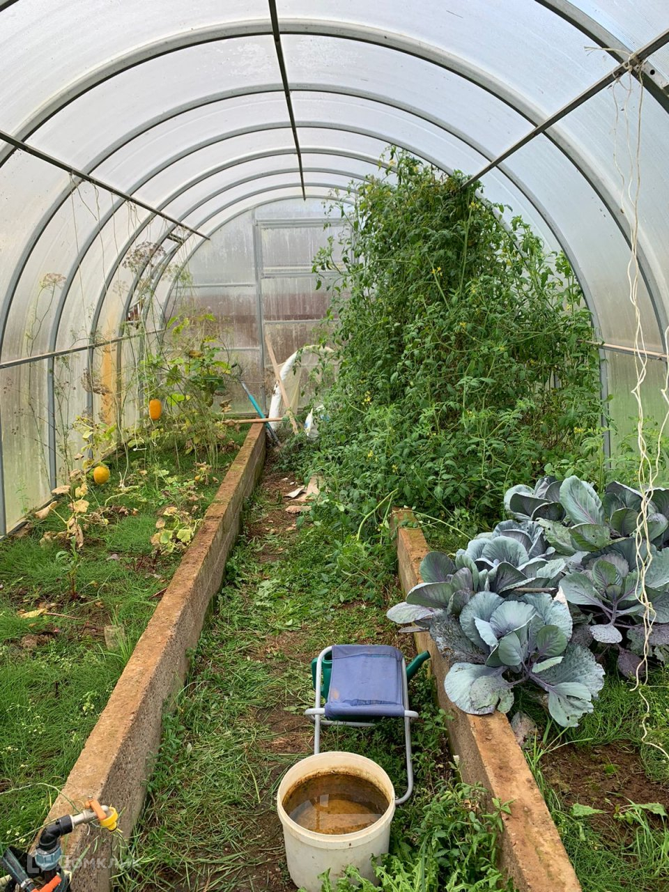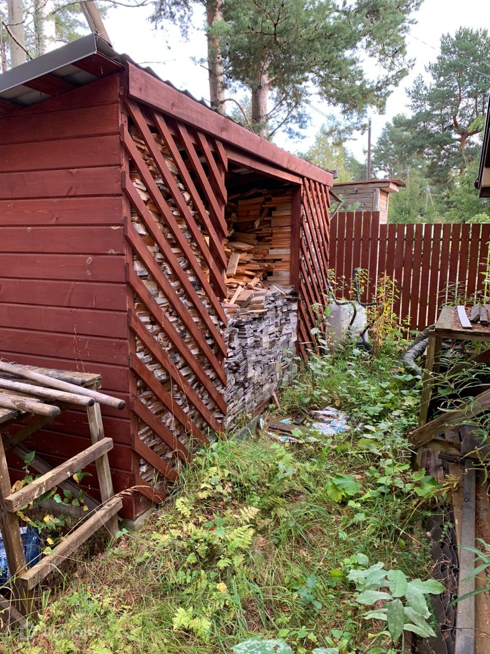 - на участке много дополнительных строений: гараж на 2 машины, мастерская, навес, беседка, теплица