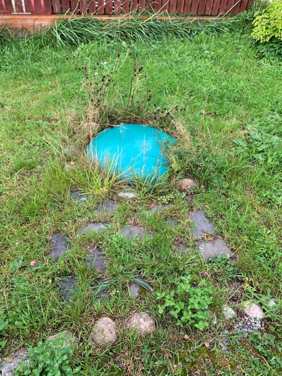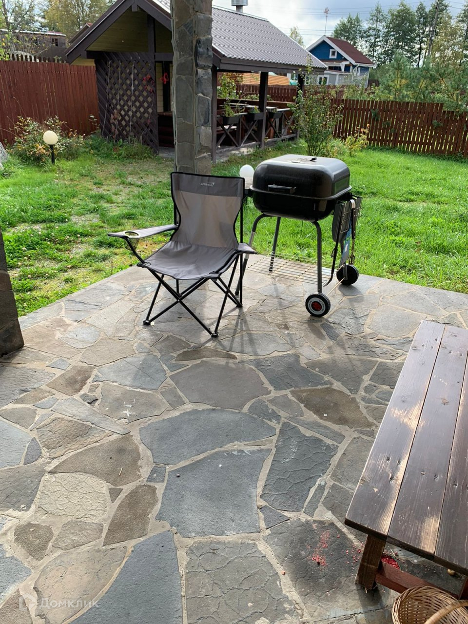 - огорожен забором из дерева, основание зацементировано