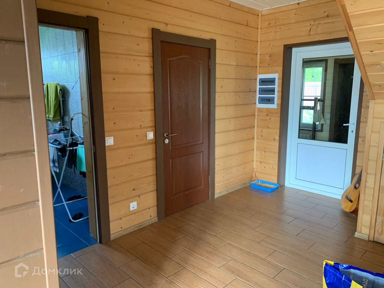 снаружи дом обшит-имитация бруса, изнутри - имитация бруса, в комнатах штукатурка+покраска,