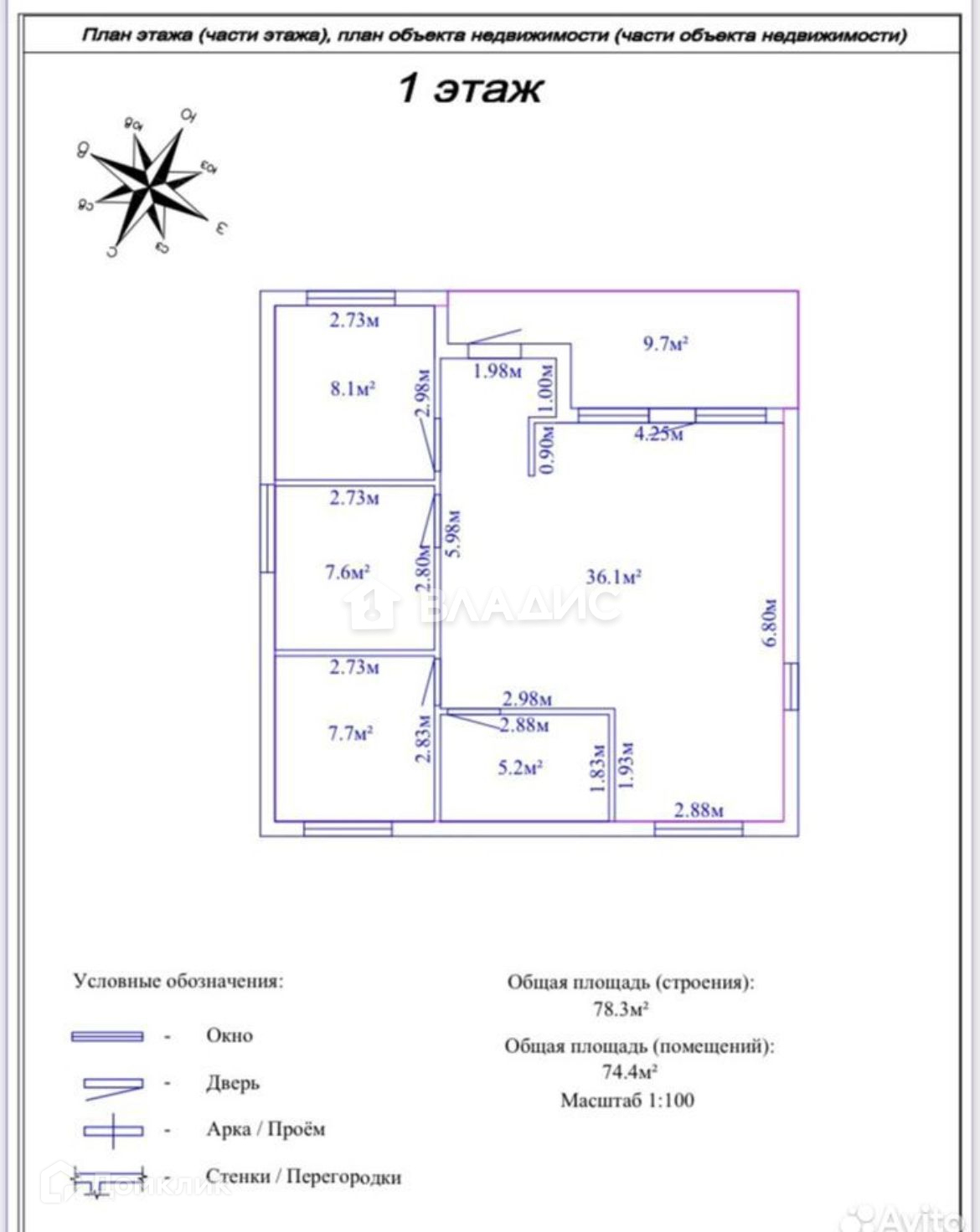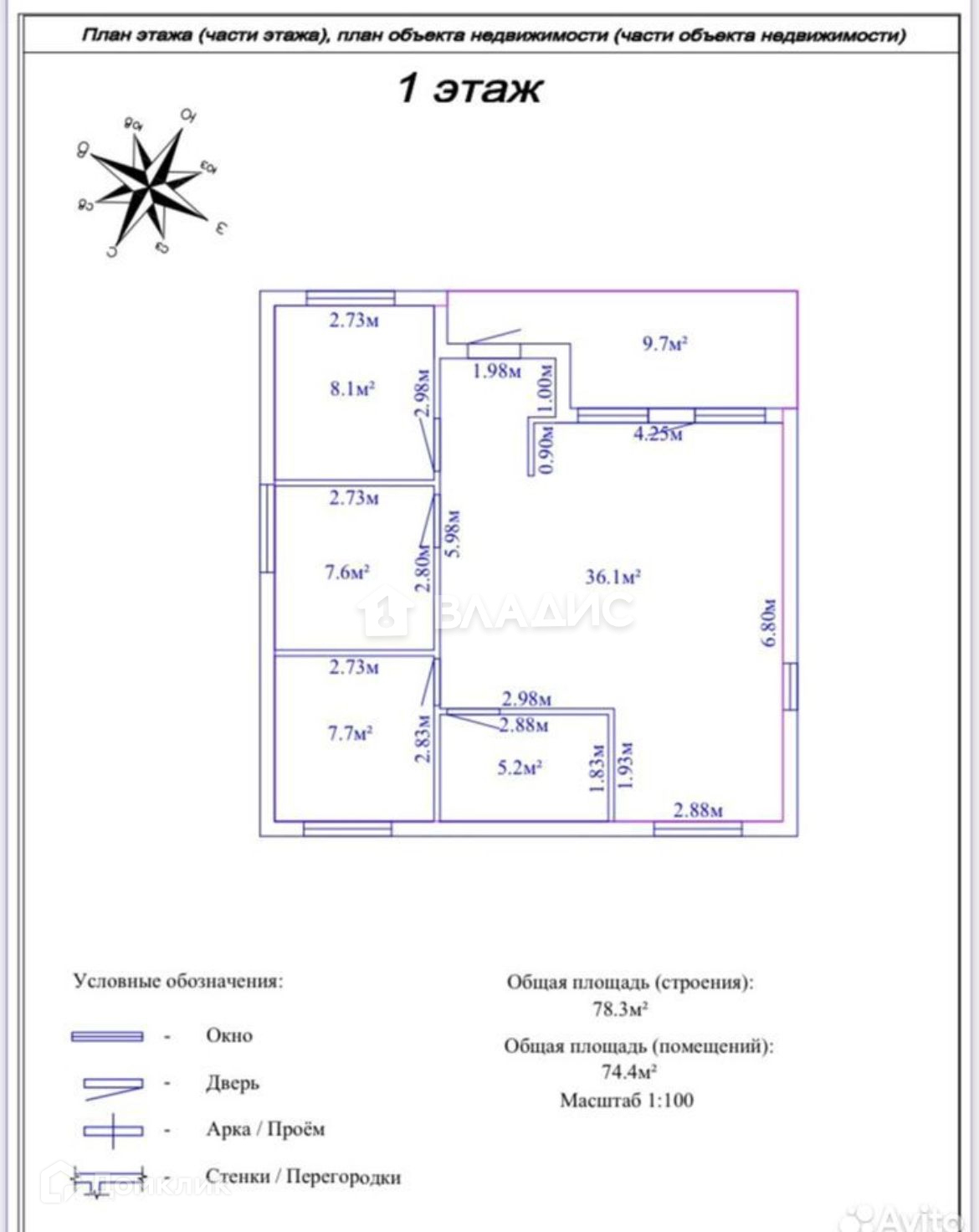 Общая площадь 74.4 м2