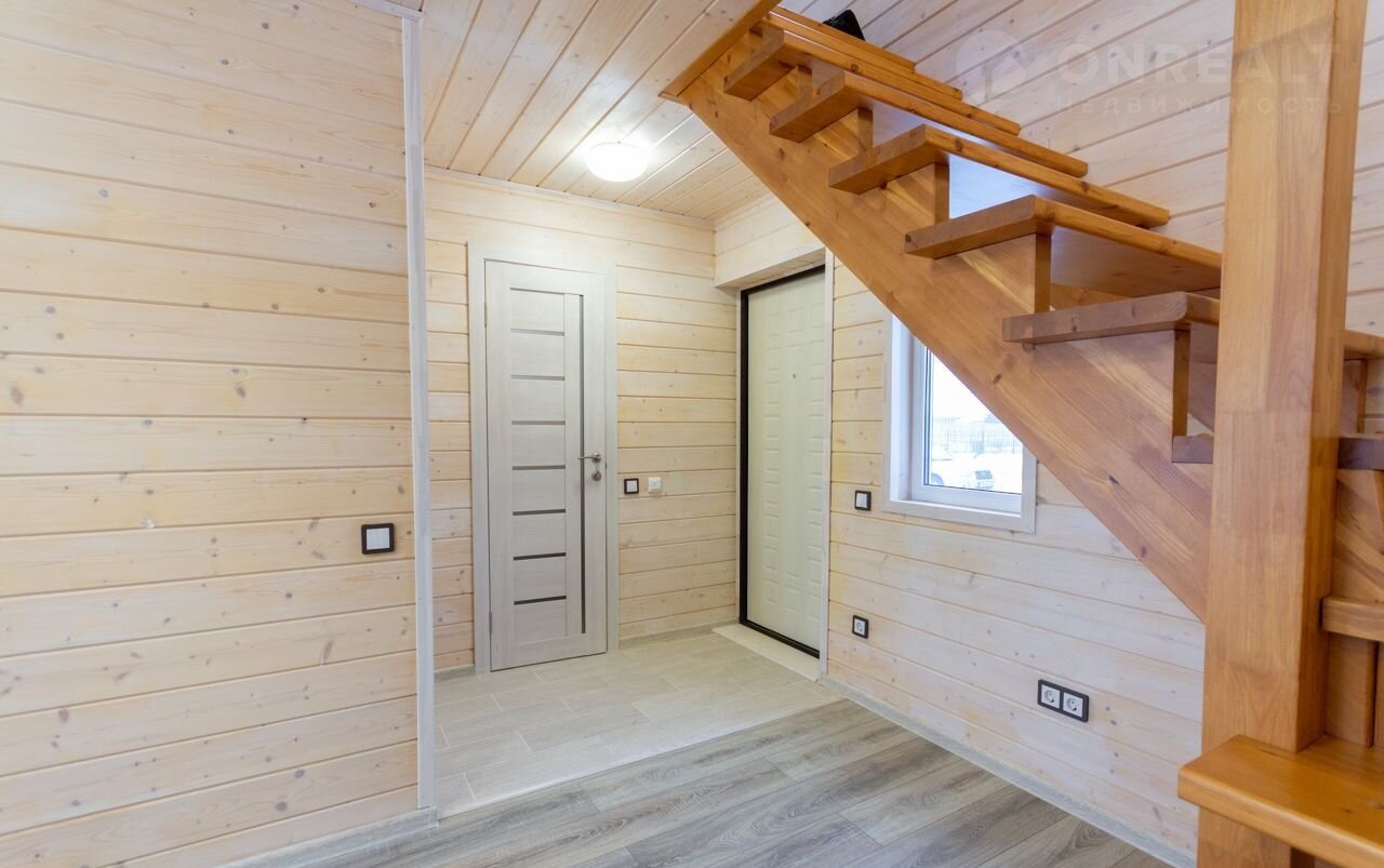Внутренняя отделка дома комбинированная. В зоне прихожей и СУ пол отделан плиткой, здесь установлен электрический теплый пол. Снаружи дом отделан сайдингом премиальной линейки Dосkе Luх, Кровля порыта металлочерепицей толщиной 0,55 мм.
