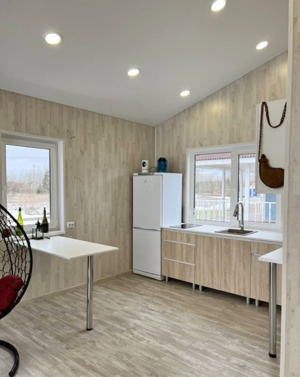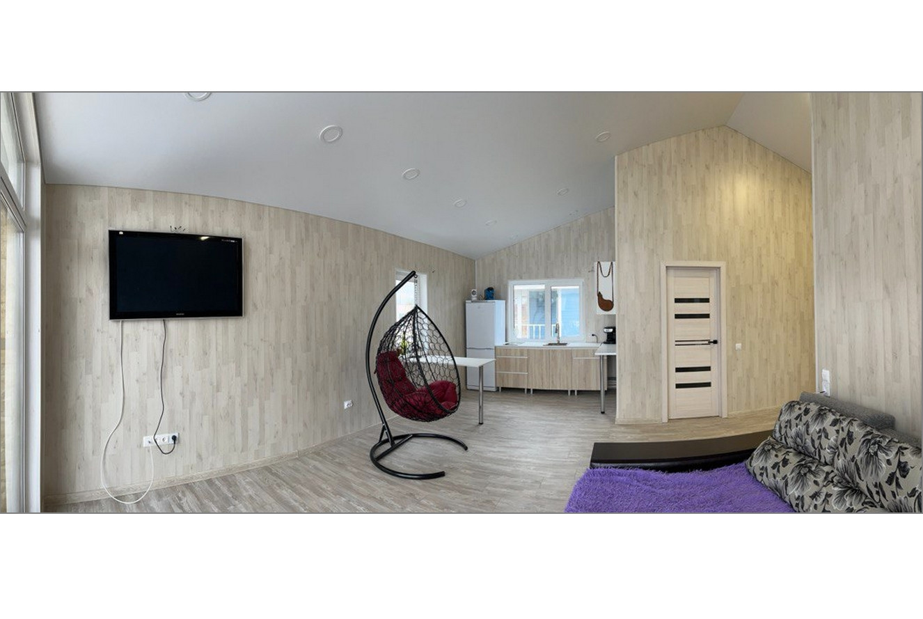 открытая под кровлей терраса, огромная 36м2 гостиная с кухней, 3 уютные спальни и полностью оборудованный санузел.