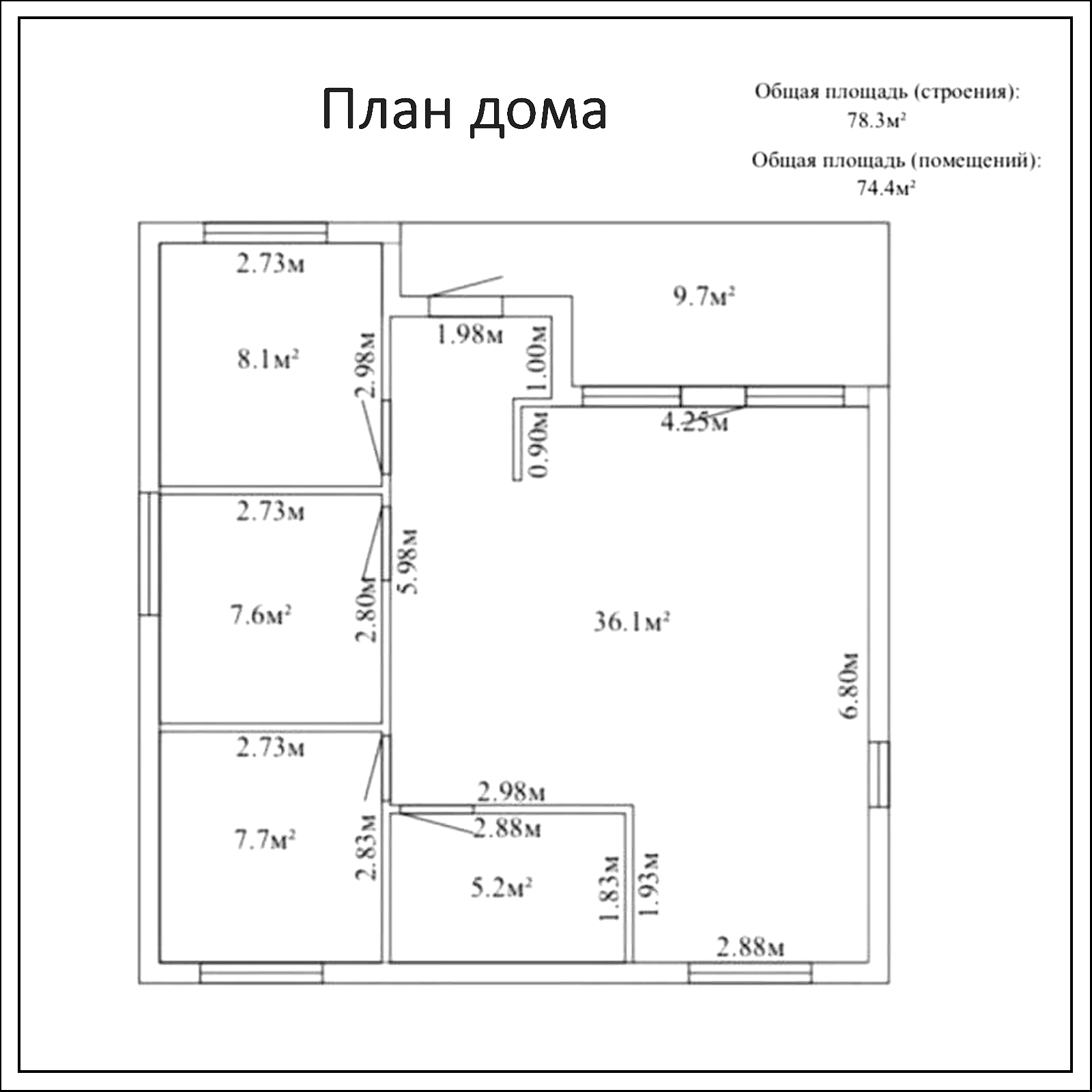 Размер 9х9м, построен по современной каркасной технологии.