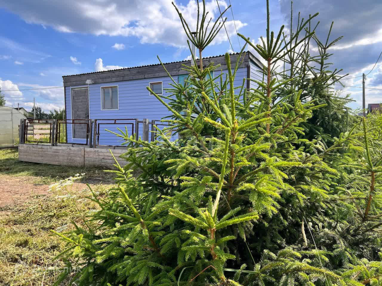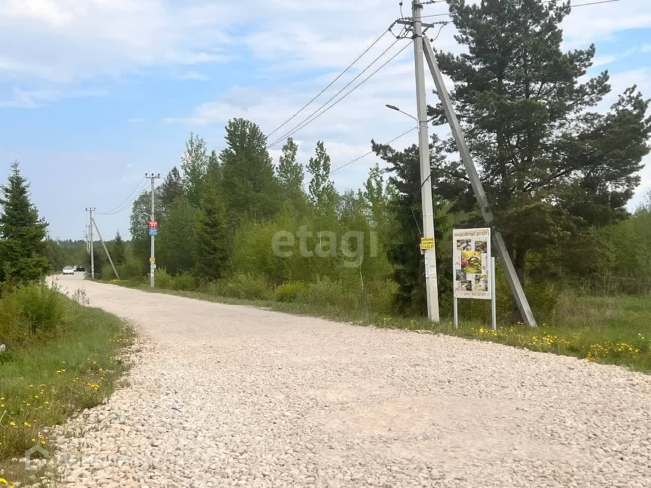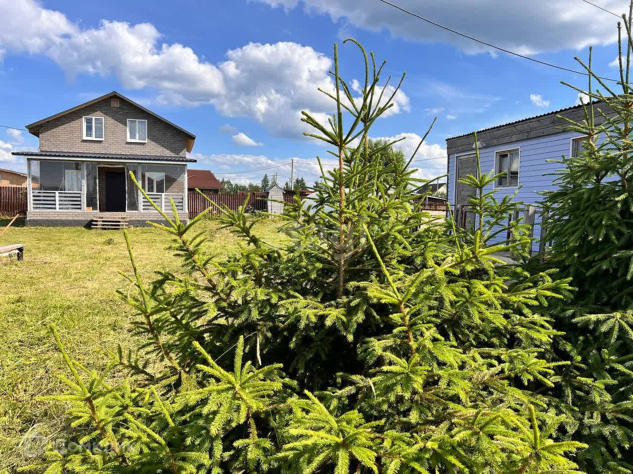 По периметру участка установлены столбы для забора, за исключением лицевой стороны, где растут небольшие ёлочки (на задней части участка установлен забор из евроштакетника).