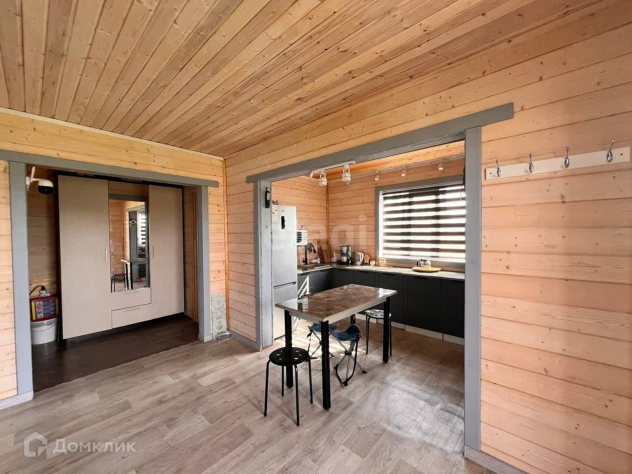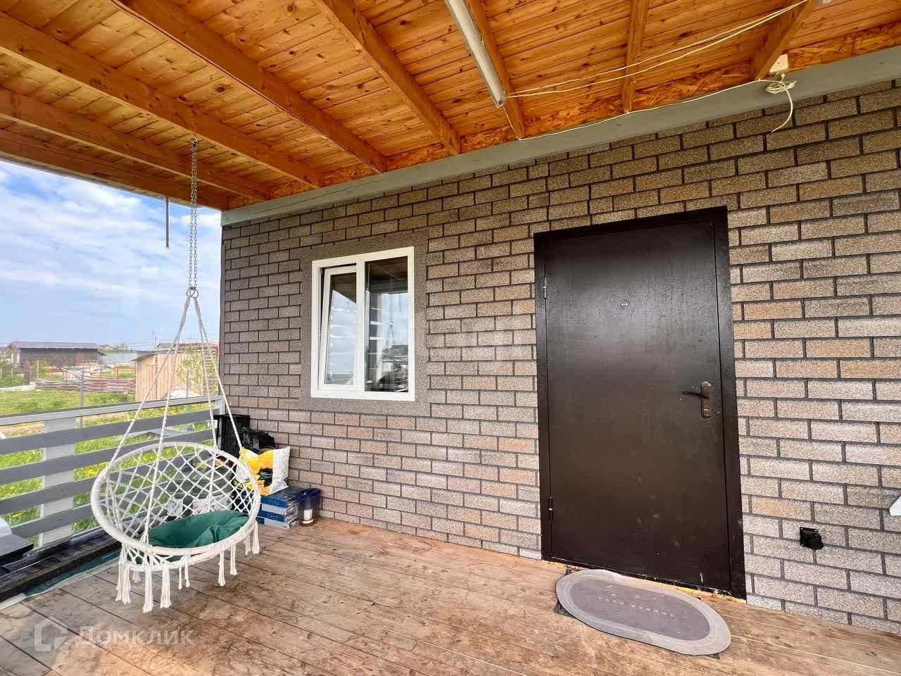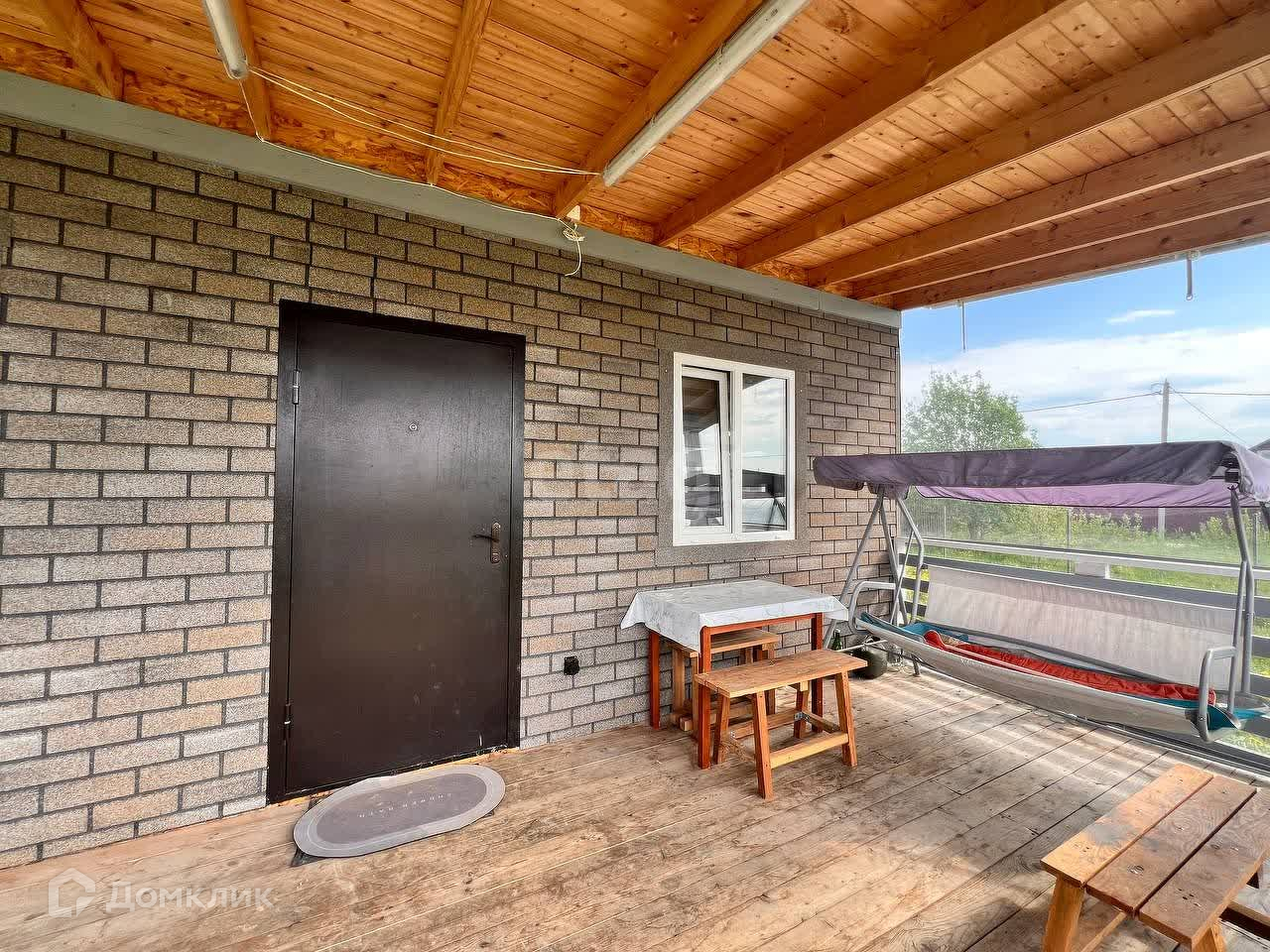 Имеется отдельная гардеробная (или кладовка) площадью 4 м2. Веранда 2,5х7 м защищена мягкими окнами, на веранде установлены две качели.