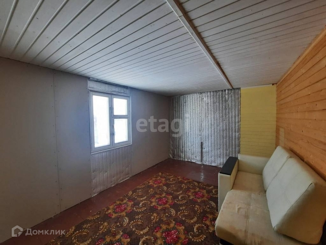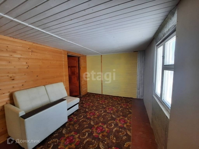 Первый этаж дома выполнен из бруса 100*150мм, 2-й этаж каркасно-щитовой. Отделка внутренних стен: вагонка.