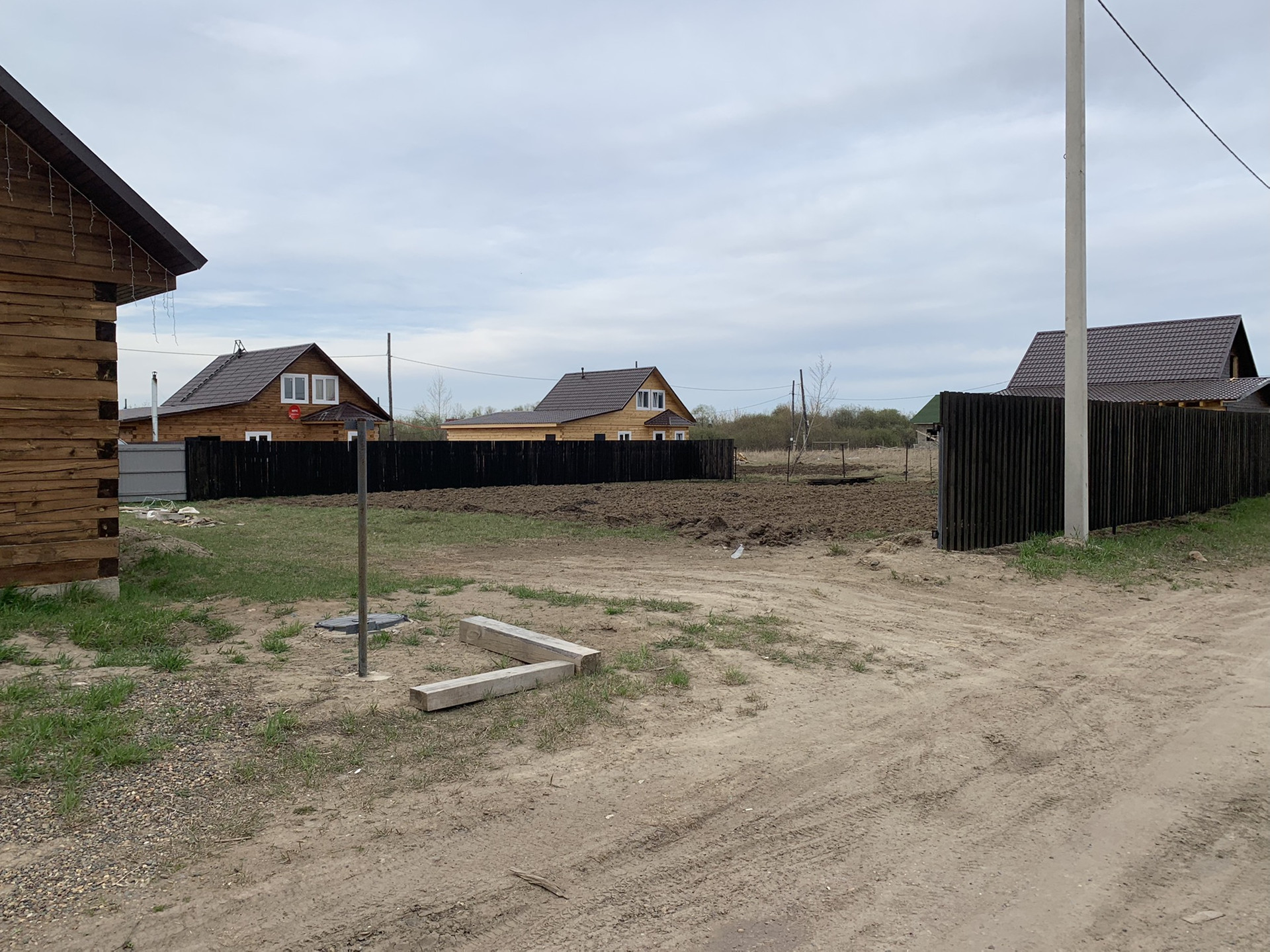 Частично стоит забор.