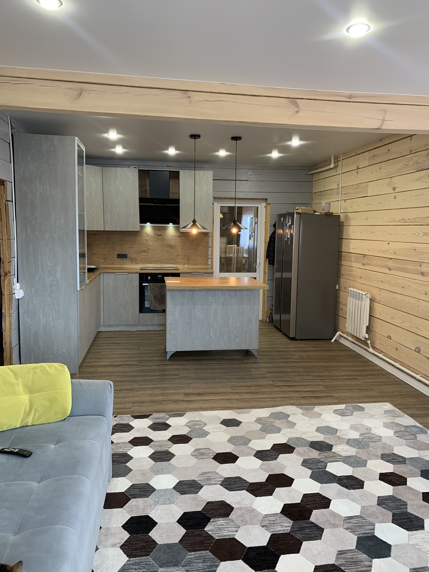 Дом 2022 года постройки, фундамент плита (утеплён), материал стен - 18 брус, внутри весь отшлифован и покрыт маслом по дереву. Проконопачен, зимой даже в морозы было тепло. Частично установлен эклектический тёплый пол.
