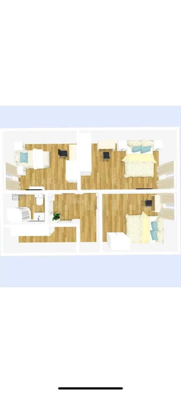 На 2 этаже: 3 спальни, туалет и кладовая. Частично сделан ремонт.