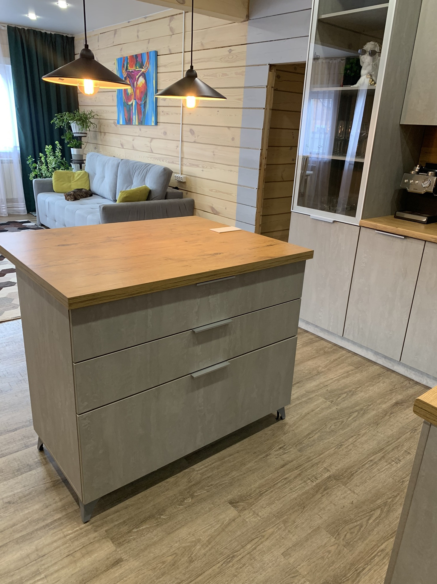 На 1 этаже: большая кухня-гостиная, спальня, санузел, прихожая и тамбур (дверь с терморазрывом). В кухне остаётся кухонный гарнитур (без техники), так же остаётся обеденная группа и шторы.