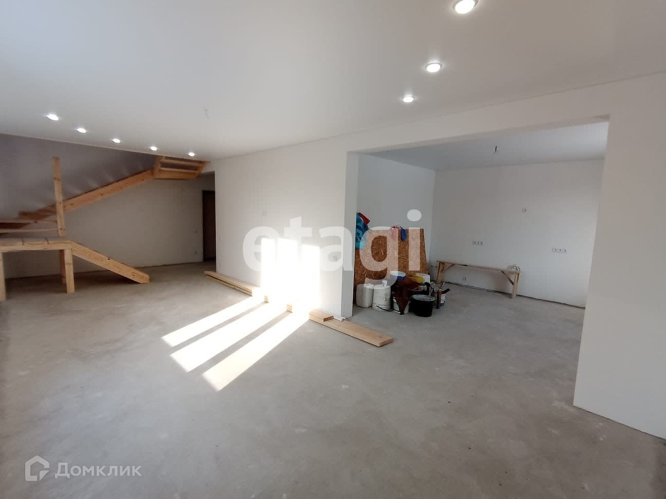 На первом этаже кухня-студия с выделенной кухонной зоной, санузел, коридор, котельная.