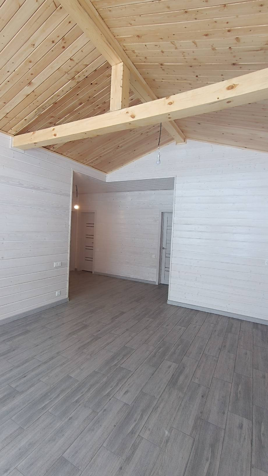 Отделка наружная - вентилируемый фасад из натурального дерева, имитация бруса 25мм, внутренняя отделка - имитация бруса 25мм.