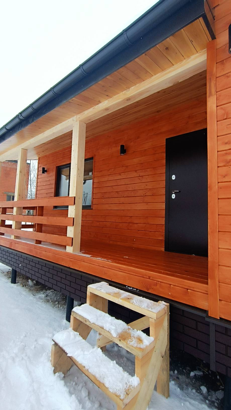 Веранда и подшивка кровли выполнены из архангельской лиственницы.