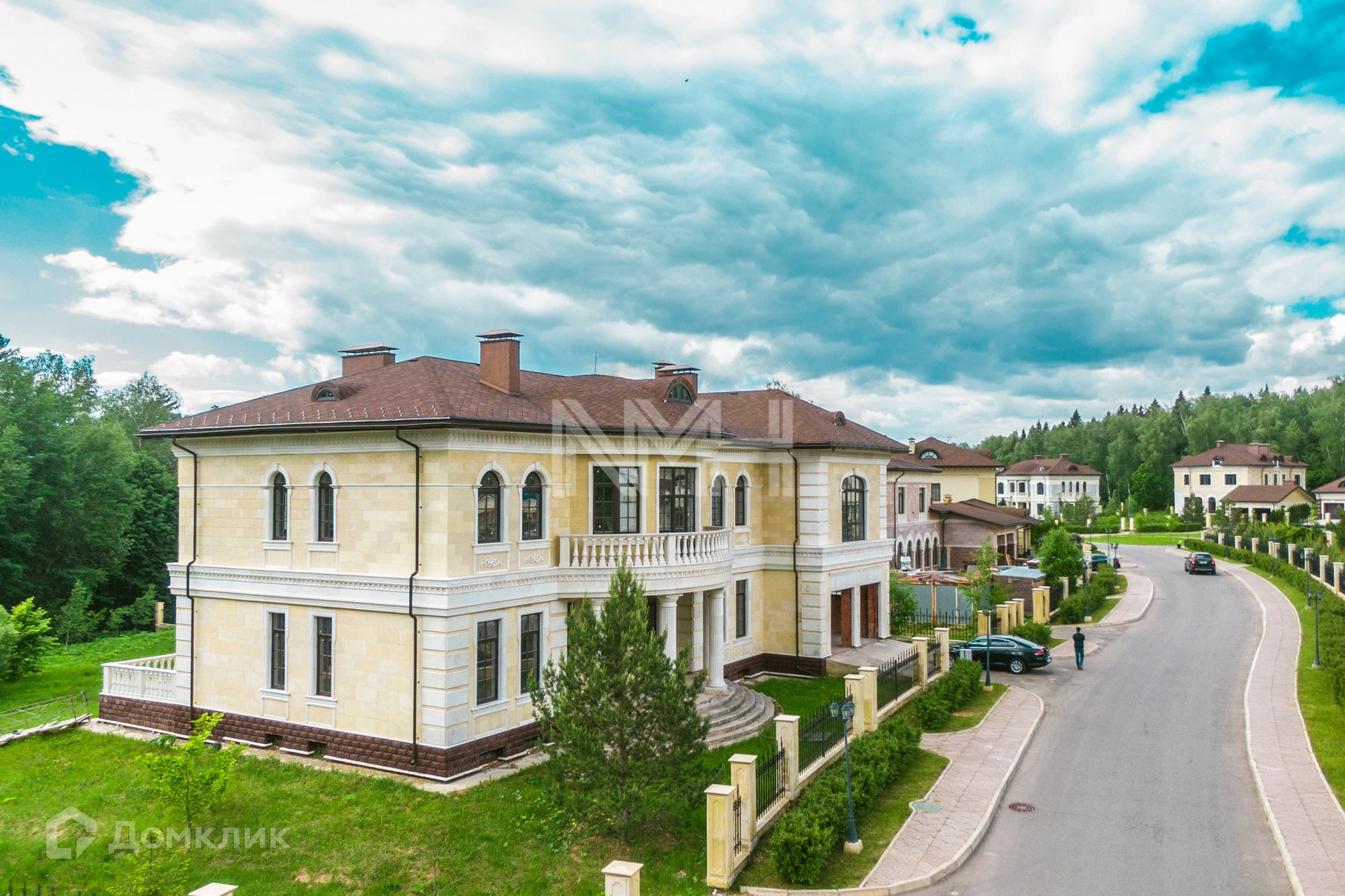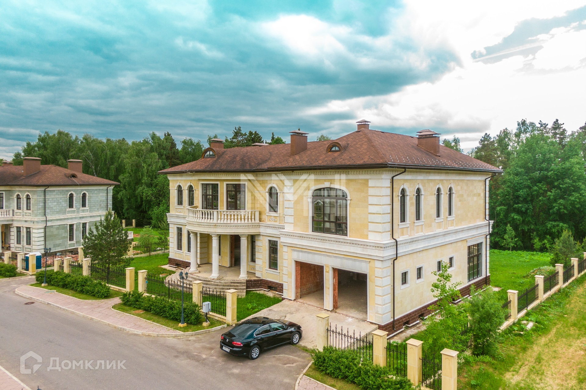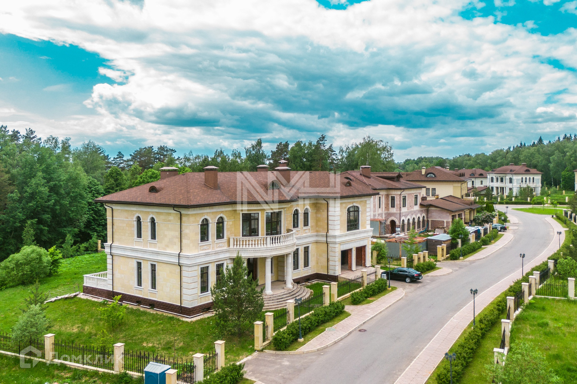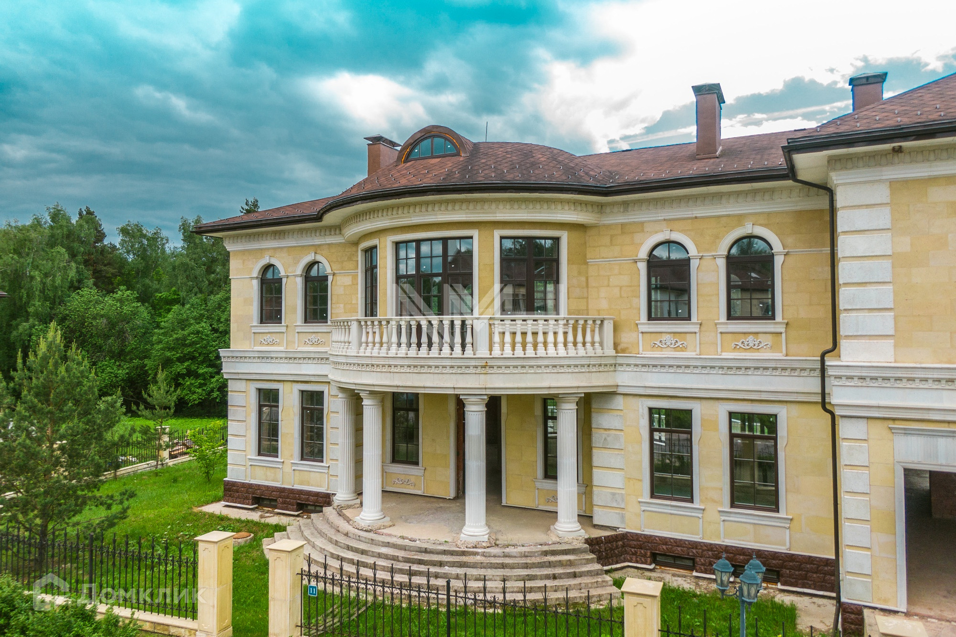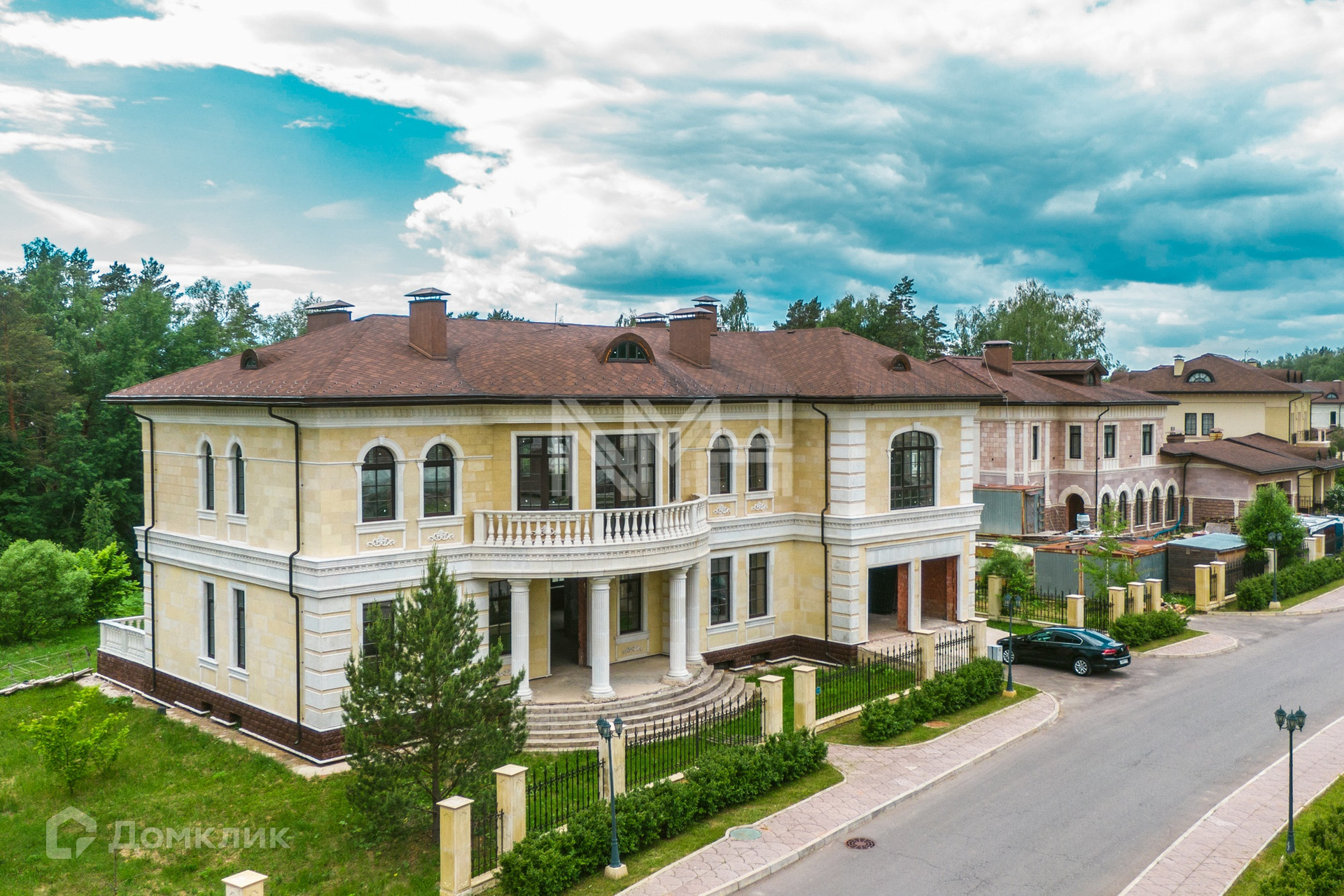 Кирпичный дом в классическом стиле, 926 кв. м, под отделку, на участке 30,33 сотки в коттеджном поселке премиум-класса «Идиллия». Поселок расположен в 25 км от МКАД по Калужскому шоссе, территория Новой Москвы.