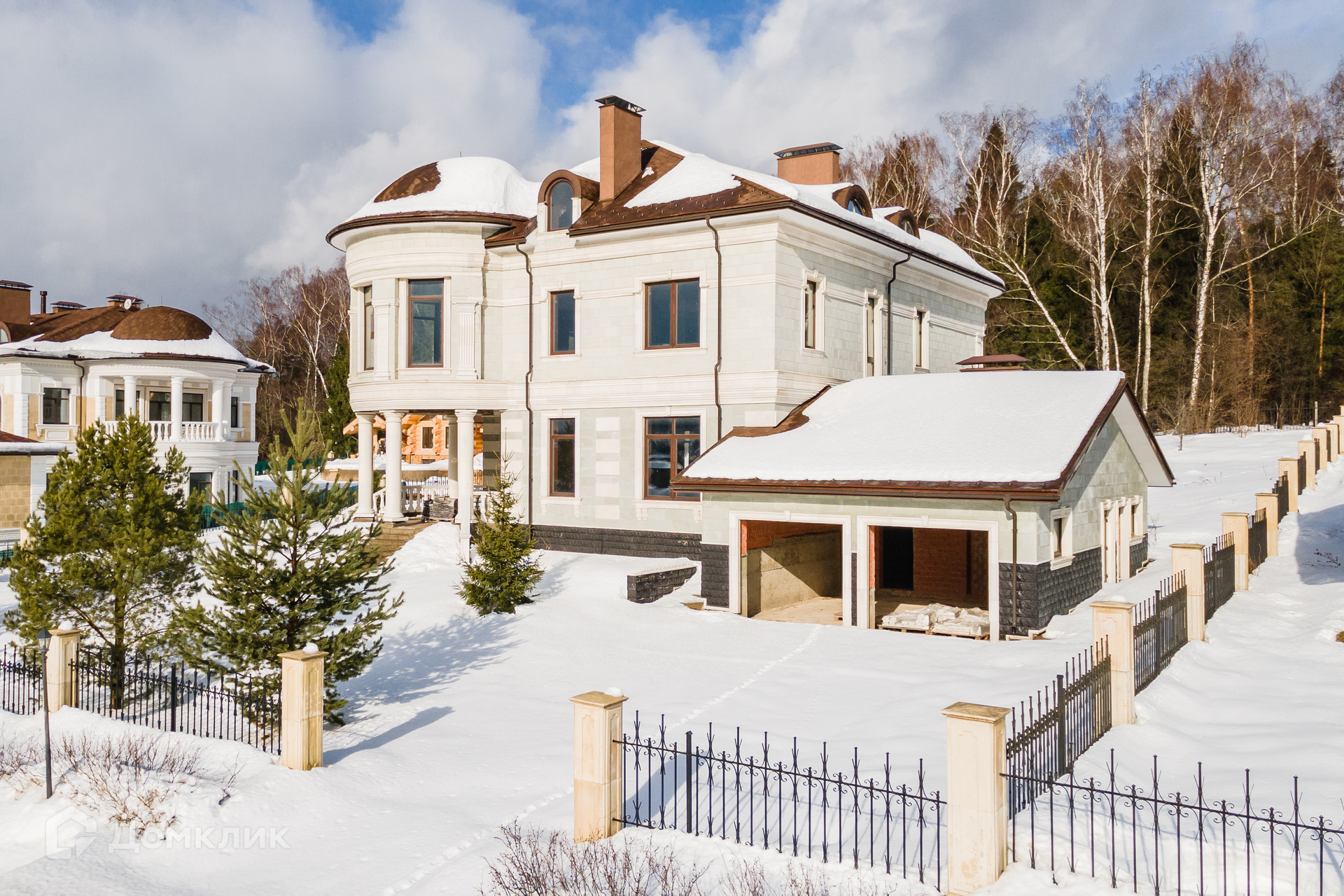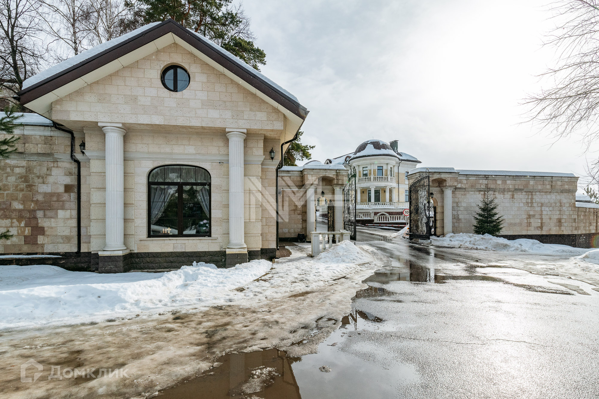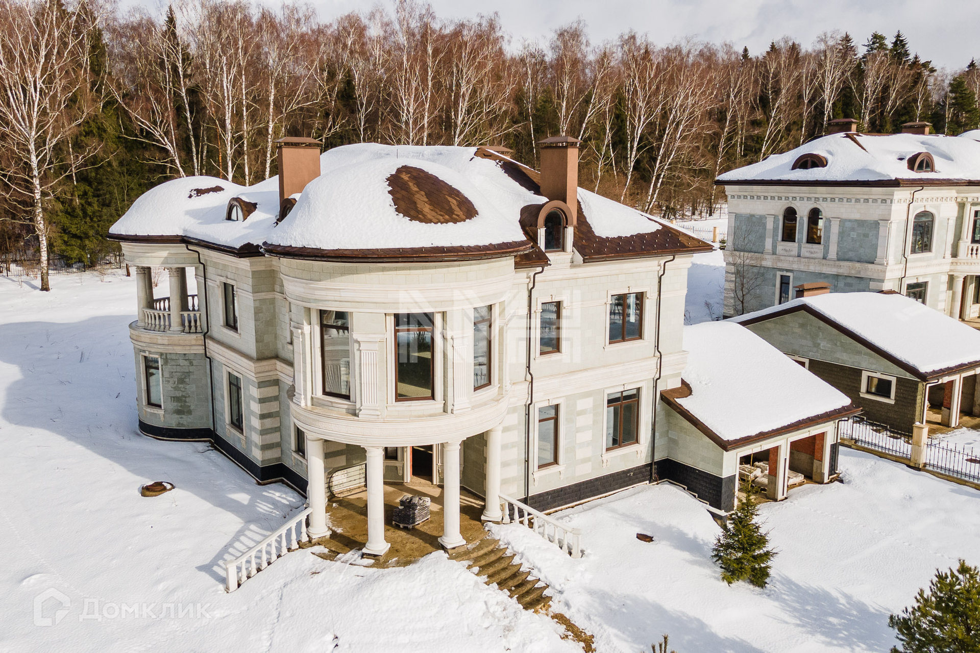 Дом в классическом стиле 860 кв. м без отделки с панорамным видом на берег реки Пахра. Коттедж расположен на участке 30,78 сот. в коттеджном поселке премиум-класса «Идиллия», в 25 км от МКАД по Калужскому шоссе.