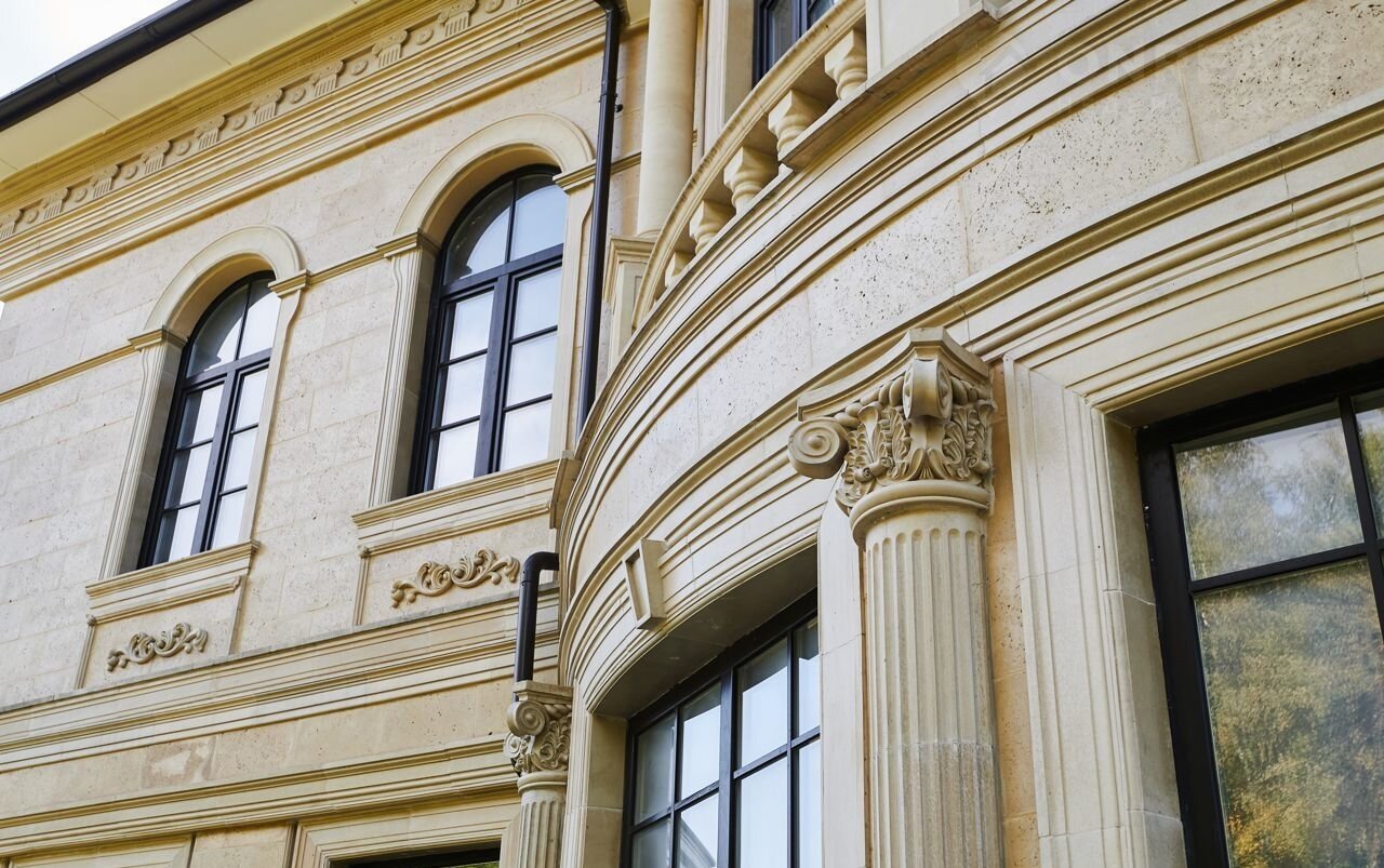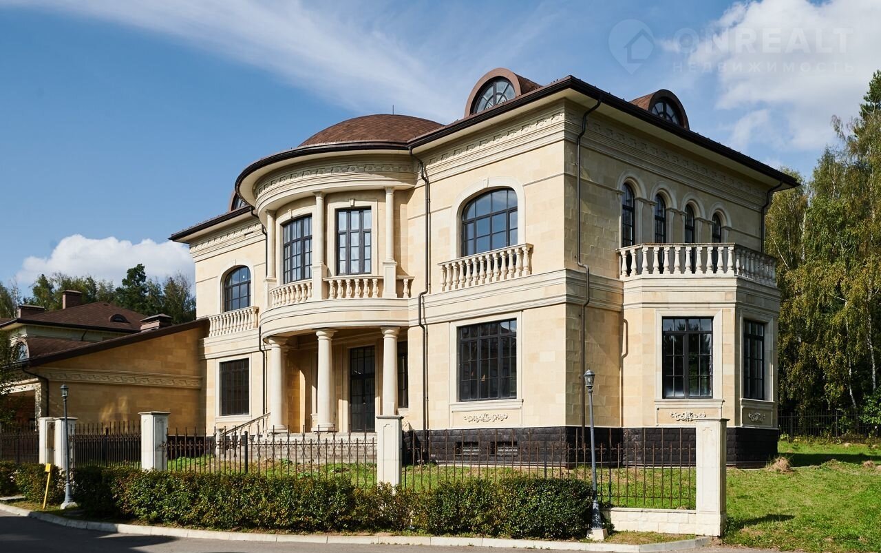 Кирпичный oсобняк постpoен в стиле «классицизм», традиционном для русских усадеб ХIХ века. При строительстве использовались современные, качественные материалы: стены возведены из керамического кирпича, перекрытия монолитные, утеплитель «Rосkwооl», мягкая черепица «Теgоlа», фасадная отделка особняка выполнена из натурального камня. Установлены новые окна из ценных пород дерева (производство Италия). Архитектурные колонны и заказная лепнина создают особый стиль и роскошь.