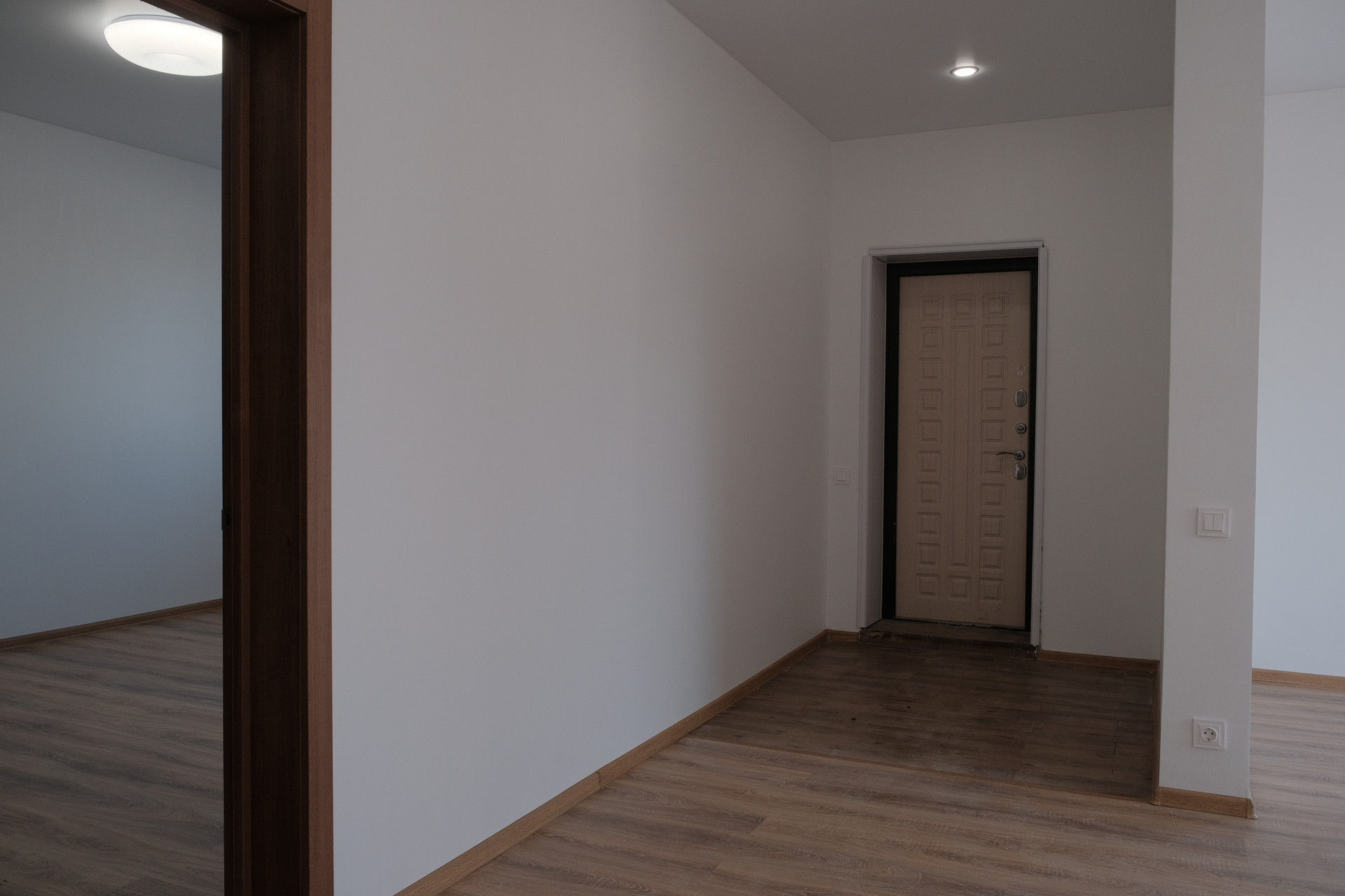 Сделан новый, современный ремонт - на полу ламинат, стены окрашены, потолки натяжные.