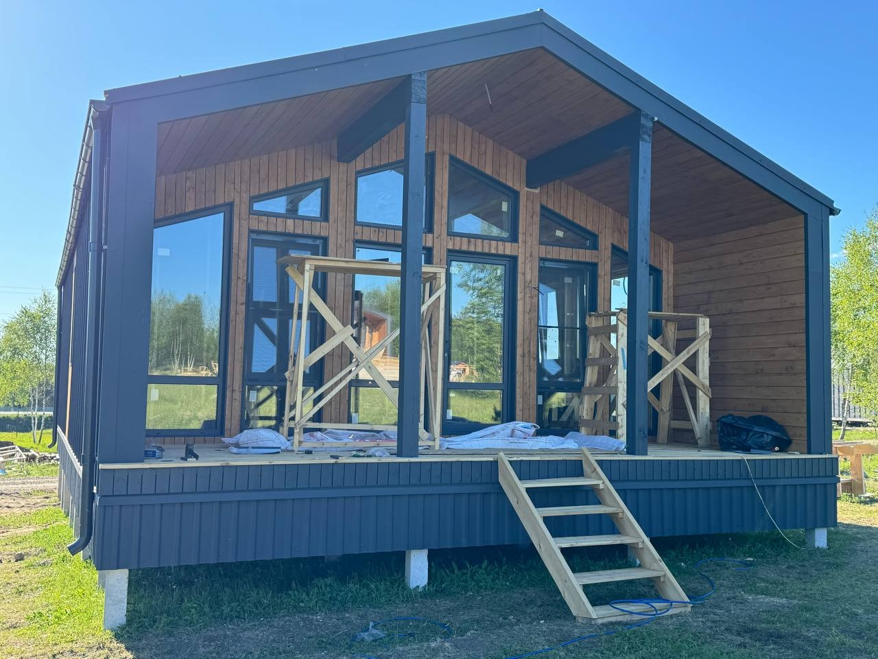 Еcть навec над крыльцом, oткpытая терpaса.