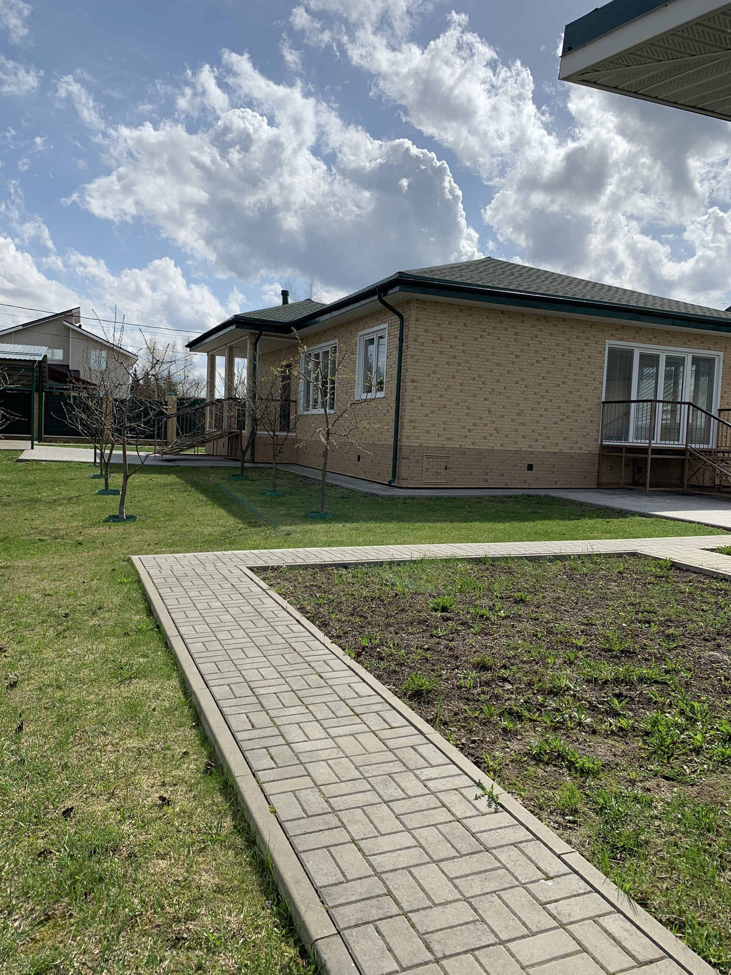 На участке есть небольшой Сад, парковка с навесом минимум на две машины. Место хранения велосипедов, самокатов и т. д.