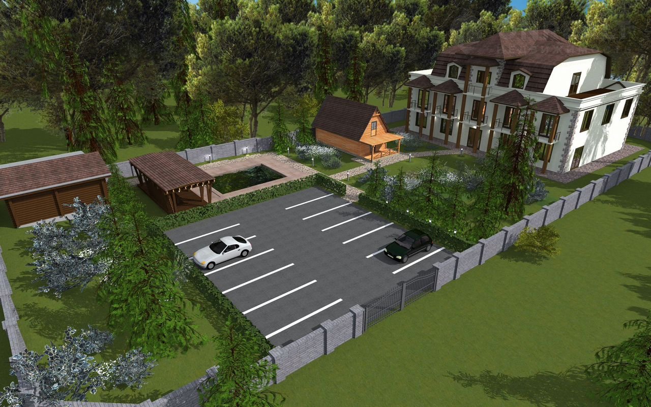 Ландшафт территории интересен тем, что он состоит из двух уровней. На ровной местности расположены строения, а пригорок является идеальным местом для строительства бани и зоны отдыха.