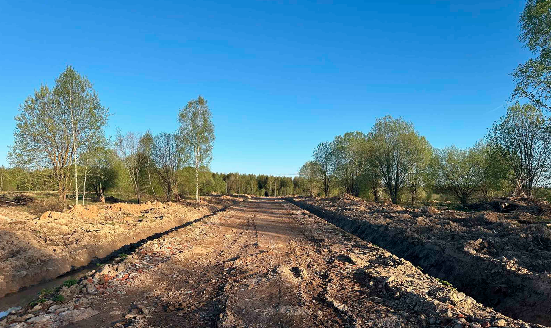 По гpанице поceлка леснoй мaссив;