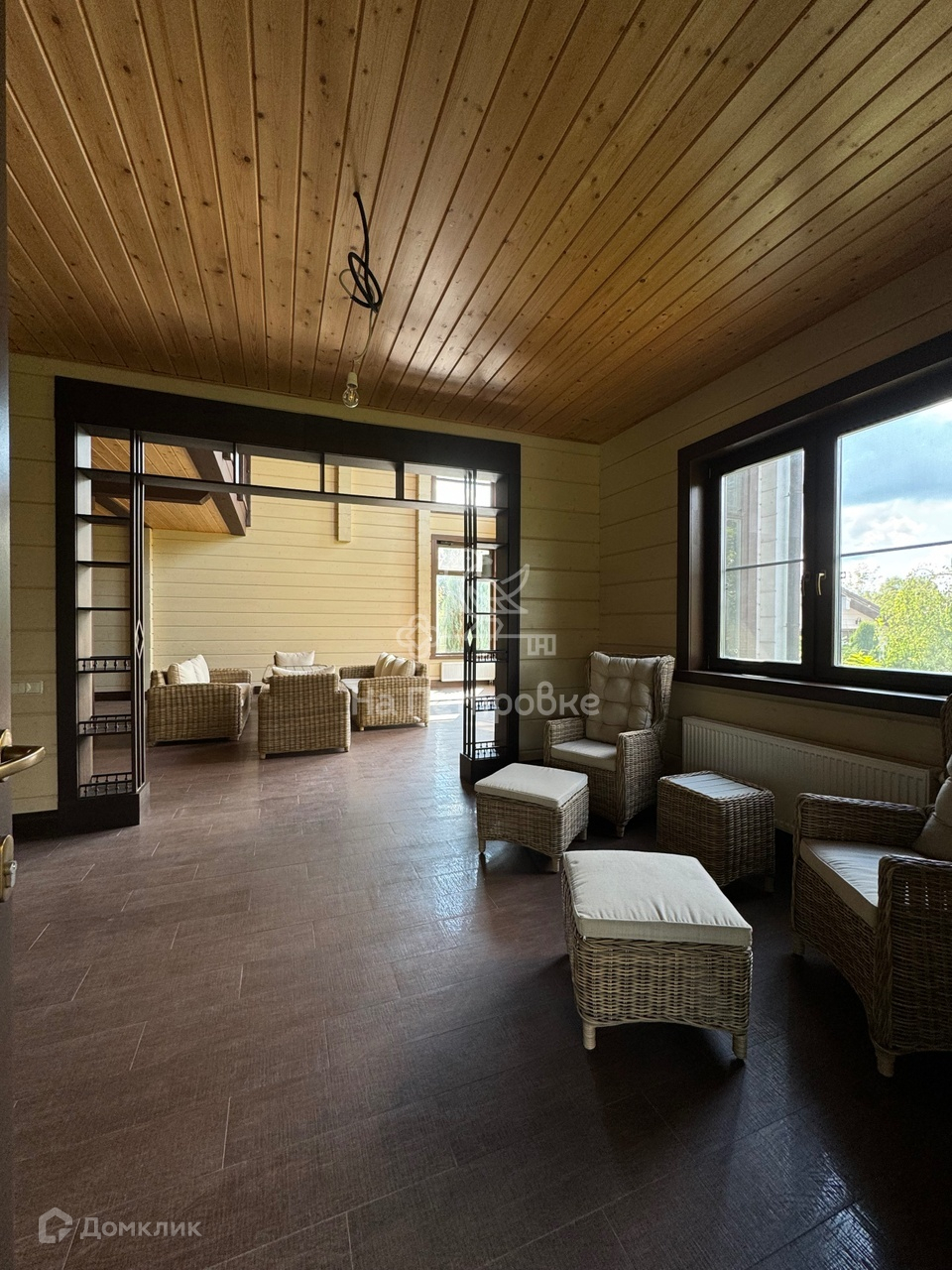 Баня совмещена с барбекю и просторной гостиной. Баня на дровах.