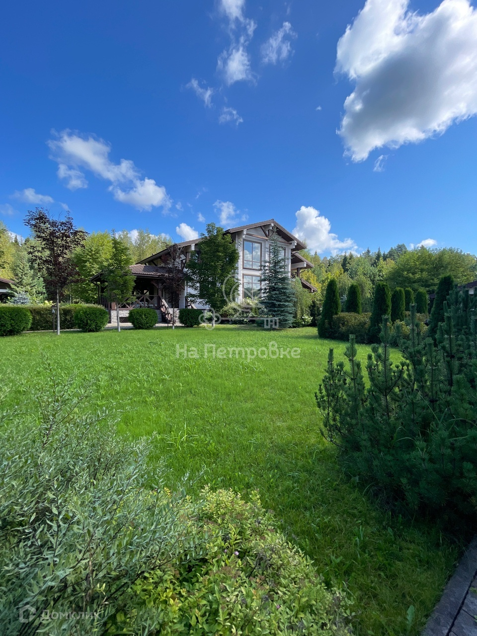 Вся придомовая территория полностью озелененная (газон, Березы, клен, декоративные камни закрывающие коммуникации основные, кустарники, Туи, Ели и многое другое) Все смотрится гармонично, так как делали для себя.