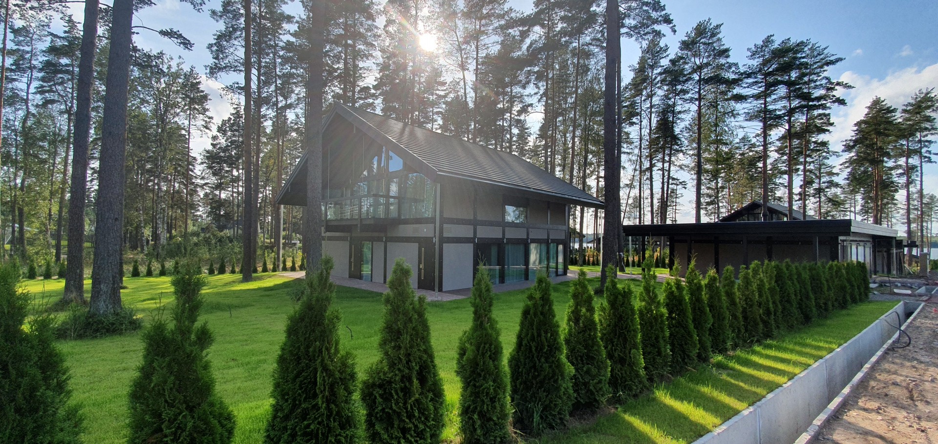 Арт. 18970638 В продаже готовое решение общей площадью 382 кв. м. на участке 28 сот. для Вашей загородной жизни на берегу большого озера в живущем поселке класса De-Luxe , где сохранено максимальное количество деревьев, с полным набором коммуникаций, с асфальтированными дорогами, единым архитектурным стилем всего в 45 минутах от Санкт-Петербурга по широкополосной магистрали.