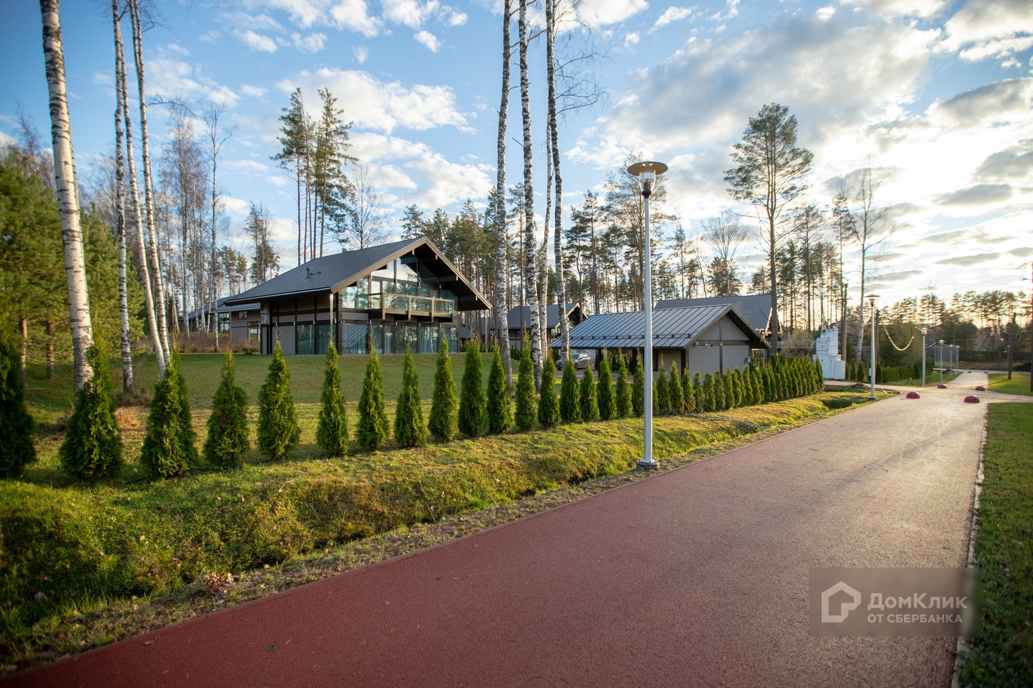 Поселок, в котором расположен дом, может претендовать на самый высокий класс: единая концепция архитектуры - фахверховые дома, вечнозеленые туи вдоль дороги, освещение территории, асфальтированные дороги, променадная дорога вдоль озера, пляжный понтон 300 м2, пирс с эллингом и стоянкой катеров, видеоконтроль береговой линии, две универсальные спортивные площадки (теннис, футбол, баскетбол, волейбол), детский городок, фермерское хозяйство (свежее молоко, творог, сметана, овощи и мясо), тепличное хозяйство, служба сервиса (уборка территории, уход за газонами и растениями).