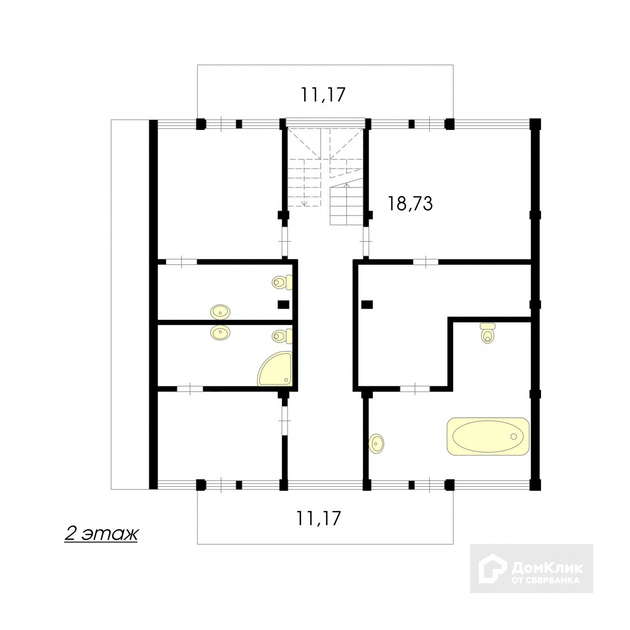На втором этаже мастер-спальня с просторной ванной комнатой, где также установлен гардеробный шкаф и есть еще 2 спальни со своими сан. узлами.
