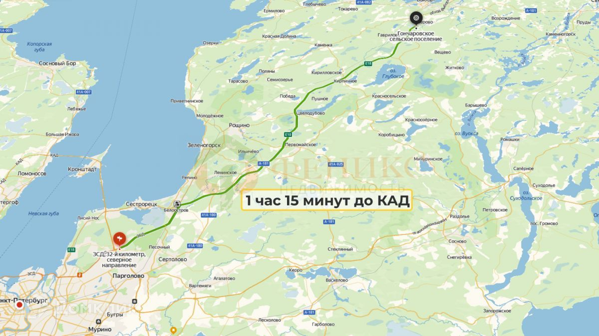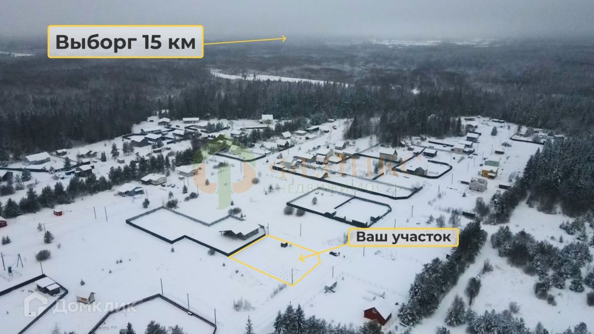 Участок находится в отличном месте, где легко добраться до всех необходимых объектов инфраструктуры. 15 минут на автомобиле до Выборга.