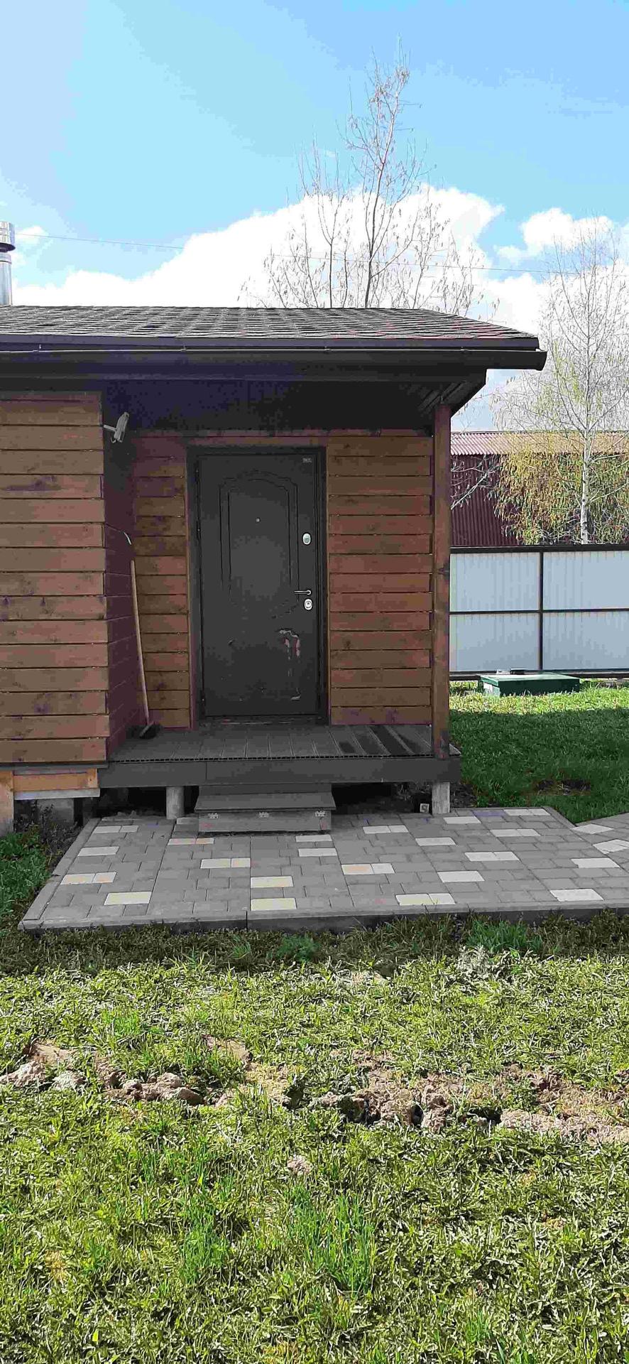 Оборудована въездная группа брусчаткой для автомобилей.