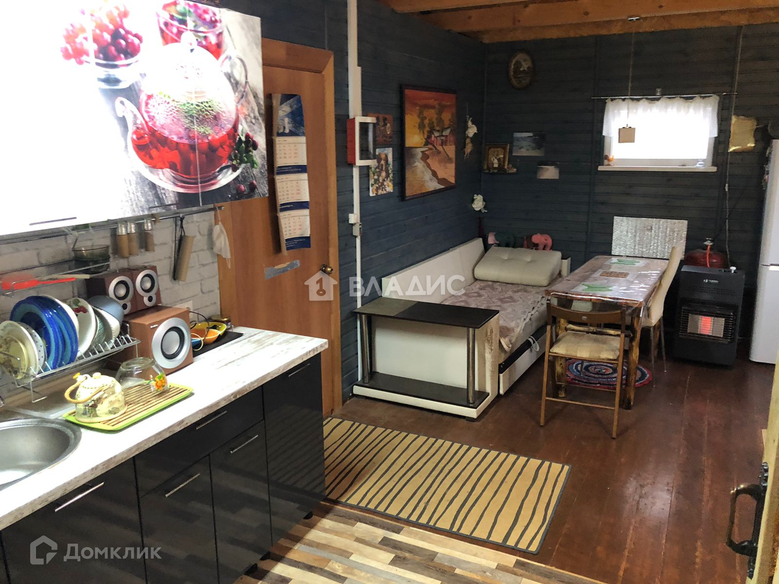Большая кухня-гостинная, коридор, санузел, ванная комната с душевой кабиной и гардеробной.