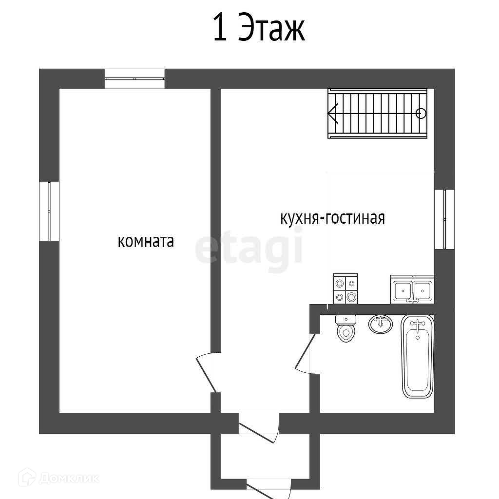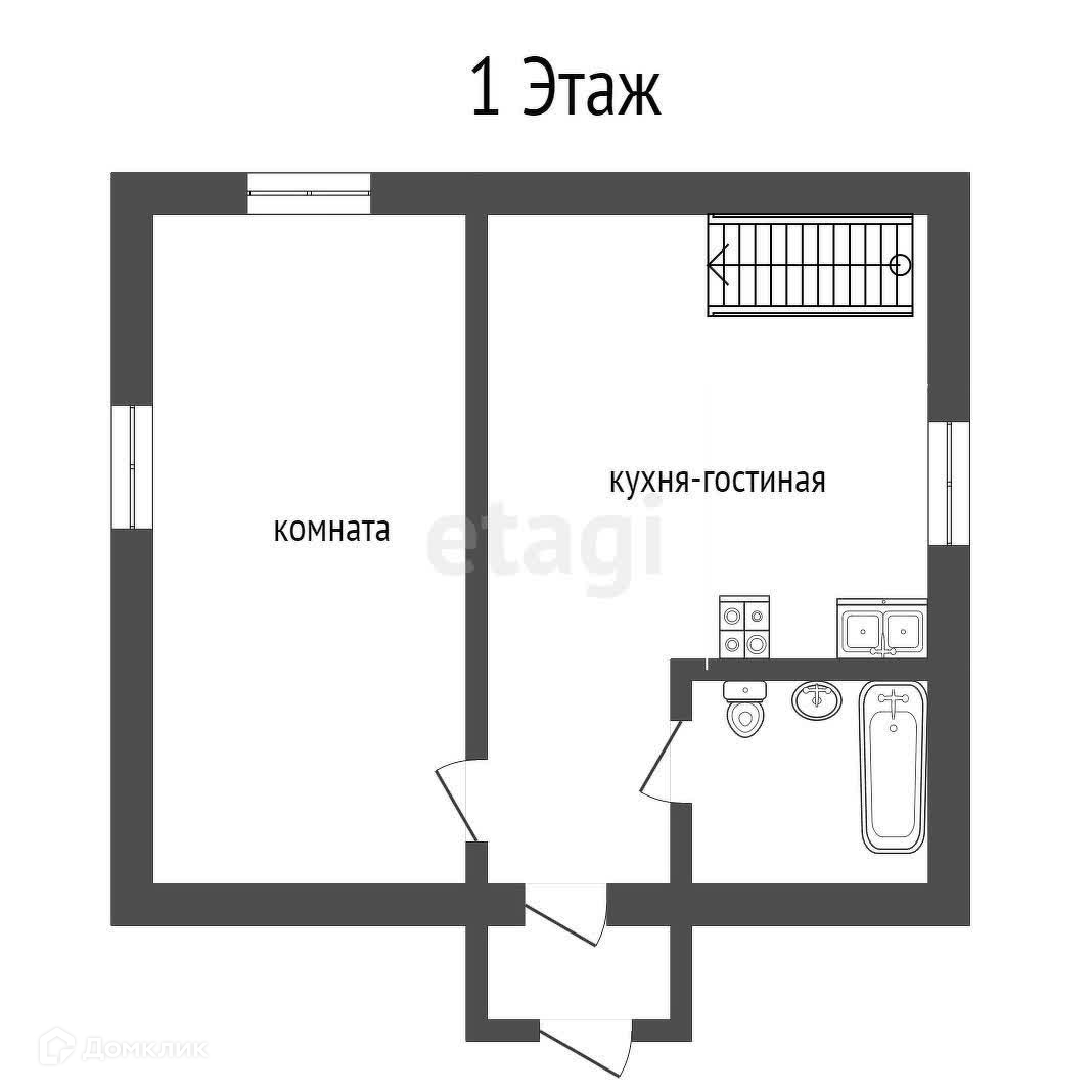 На первом этаже дома просторная кухня гостиная, изолированная комната и санузел. На втором этаже еще одна изолированная комната.