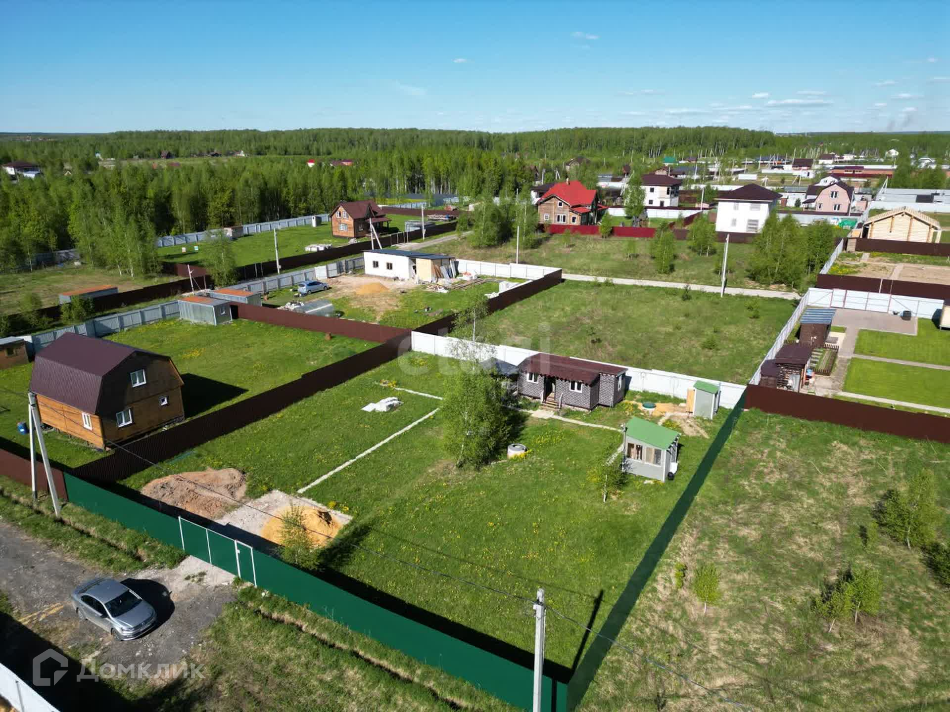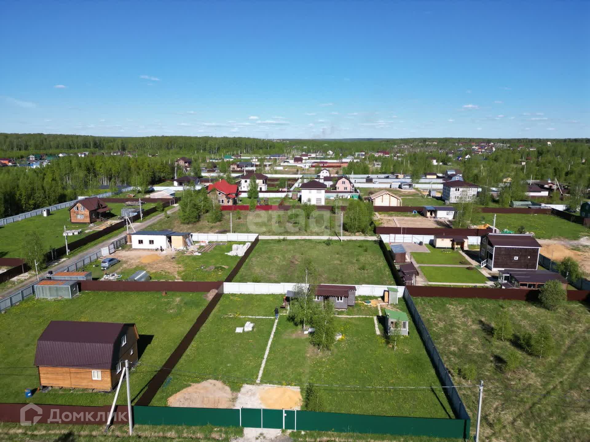 Площадь земельного участка 10 соток, огорожен со всех сторон профнастилом. Участок ровный, сухой, весной участок не топит, земля плодородная. Правильная форма участка идеально подойдет для дальнейшего строительства капитального дома.