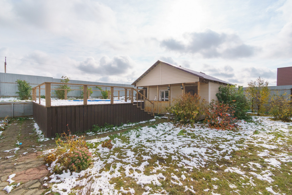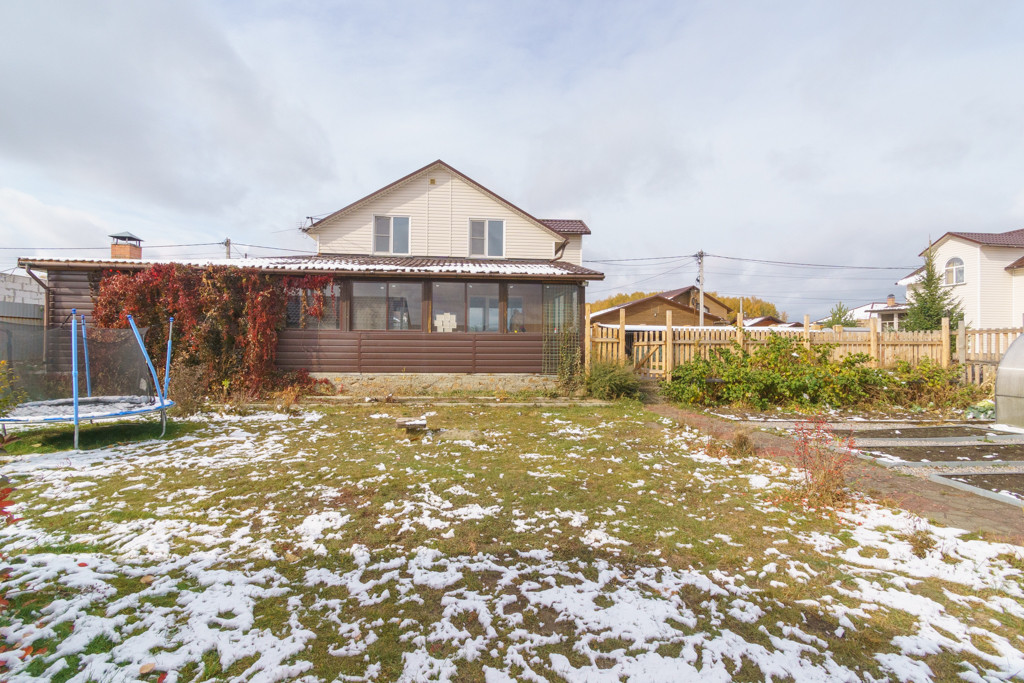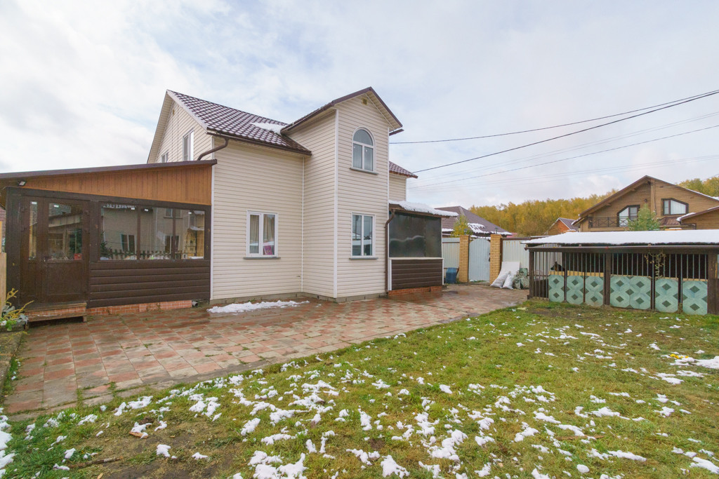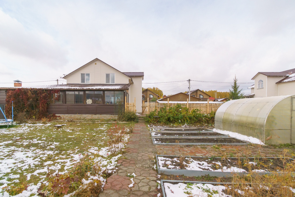 В продаже двухэтажный теплый каркасный дом. Первый этаж - Вместительная Кухня-гостиная, сан.узел с душевой, спальная комната. Прямой выход из кухни-гостиной на застекленную веранду на которой расположена зона мангала и зона отдыха с выходом на улицу. Второй этаж: три спальные комнаты, сан.узел с ванной. Все коммуникации, газ, вода-скважина, канализация септик, отопление газовое.  Большой ровный облагороженный участок.  На участке: 2 теплицы, растения. Установлен каркасный бассейн с деревянным подиумом. Баня с зоной отдыха и парилкой. Забор металлопрофиль. Видеонаблюдение. Гараж с автоматическими воротами Doorhan. Овощехранилище.