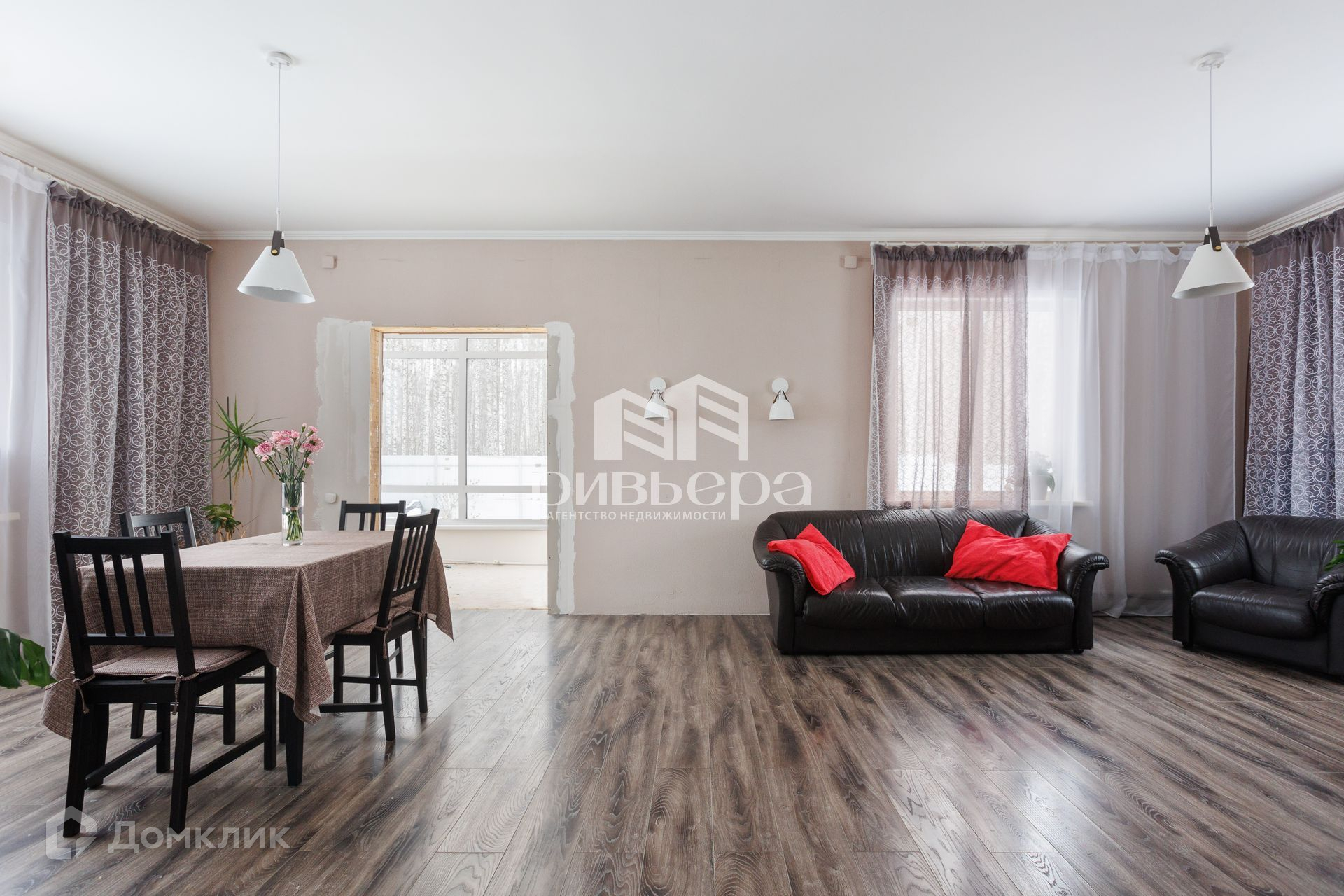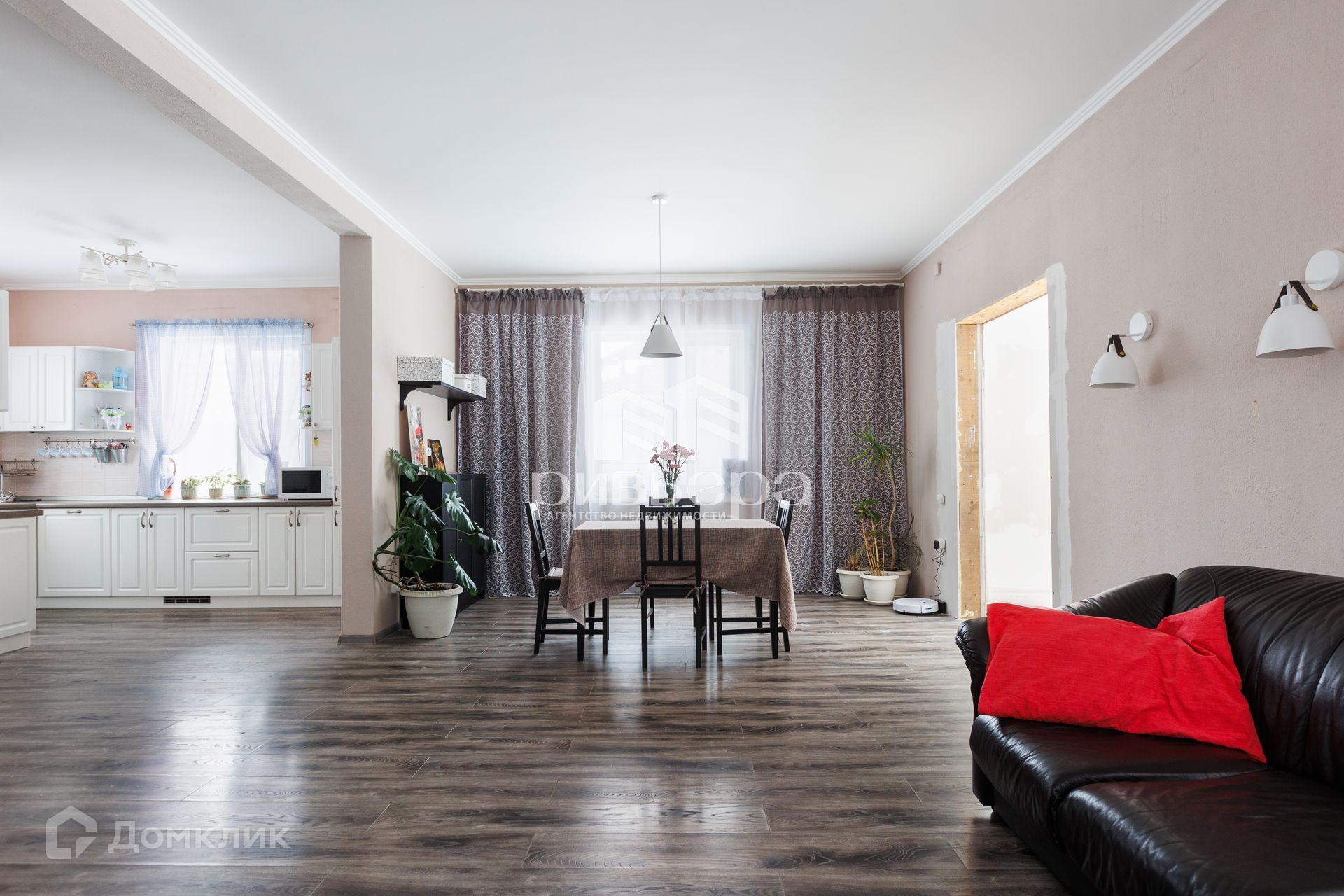 В доме остается кухонный гарнитур, встроенные шкафы и вся техника.