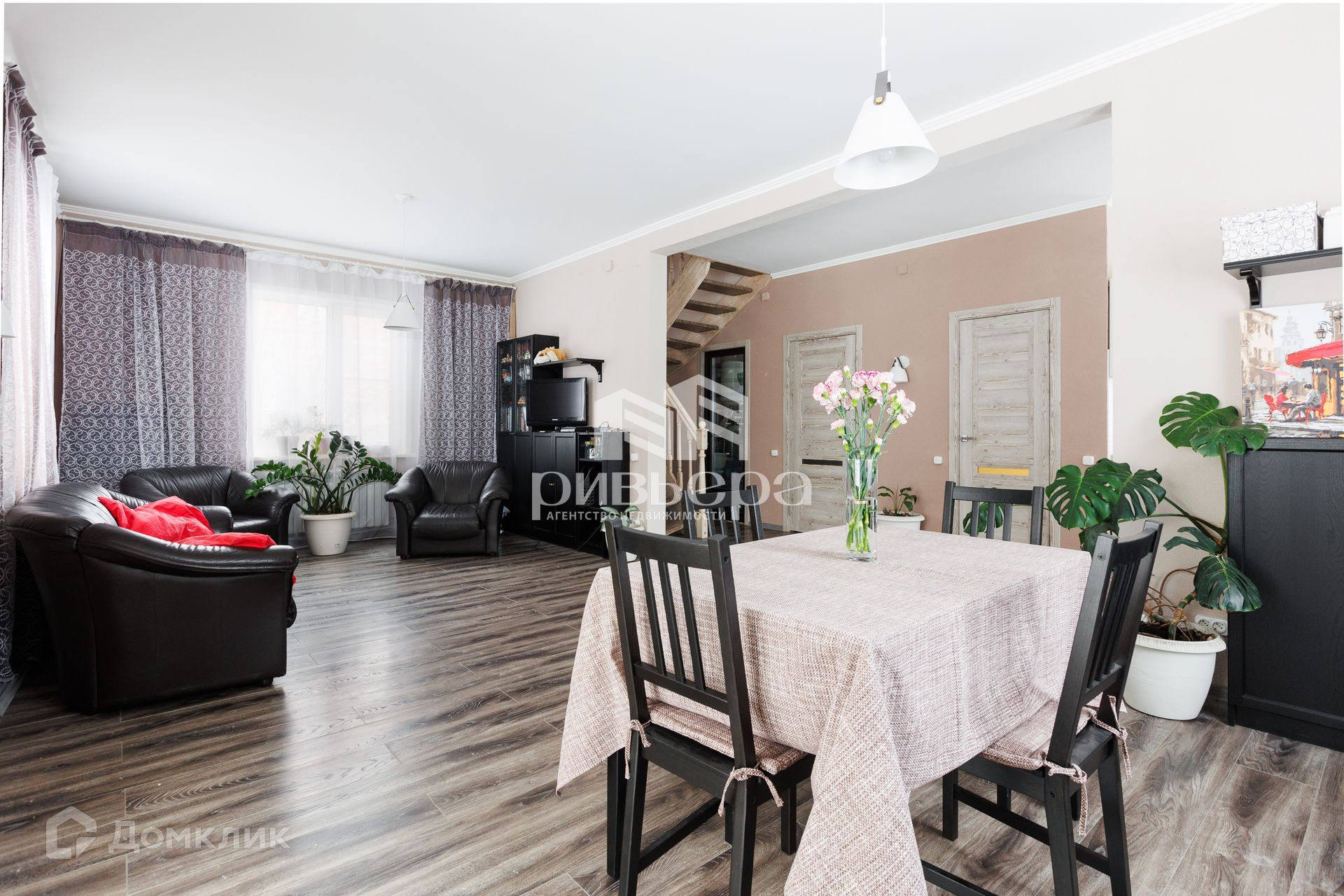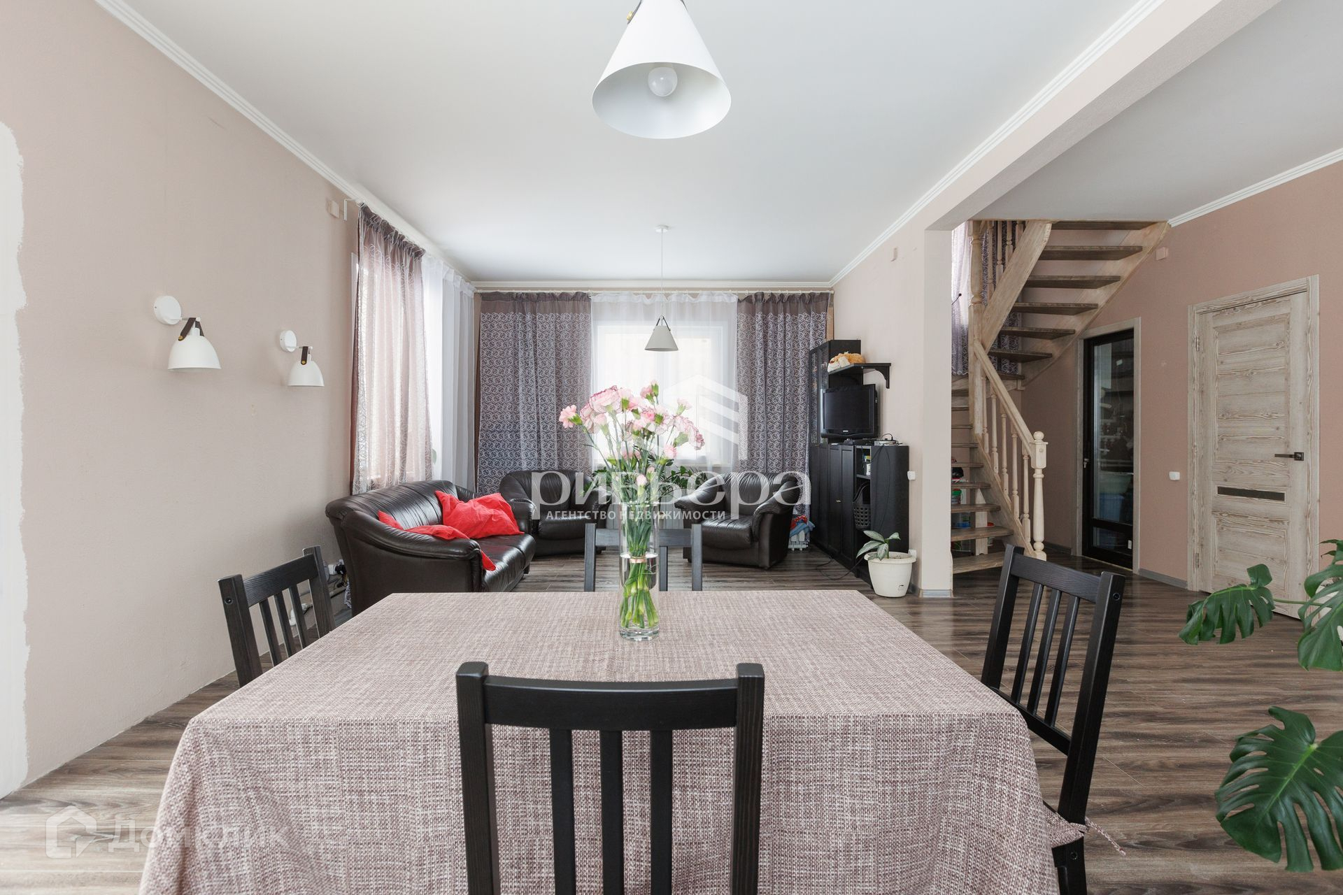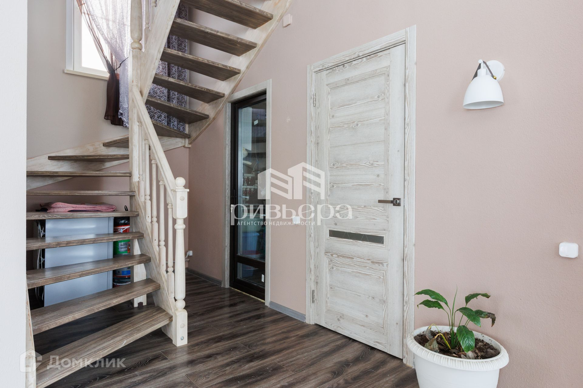 Полы ламинат, лестница сделана из лиственницы, потолки под покраску.