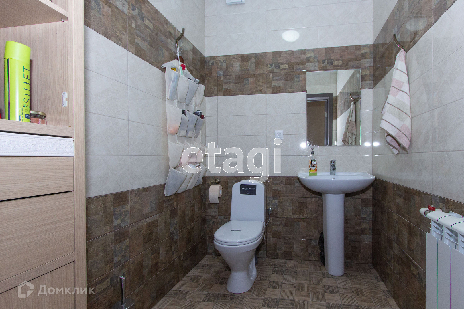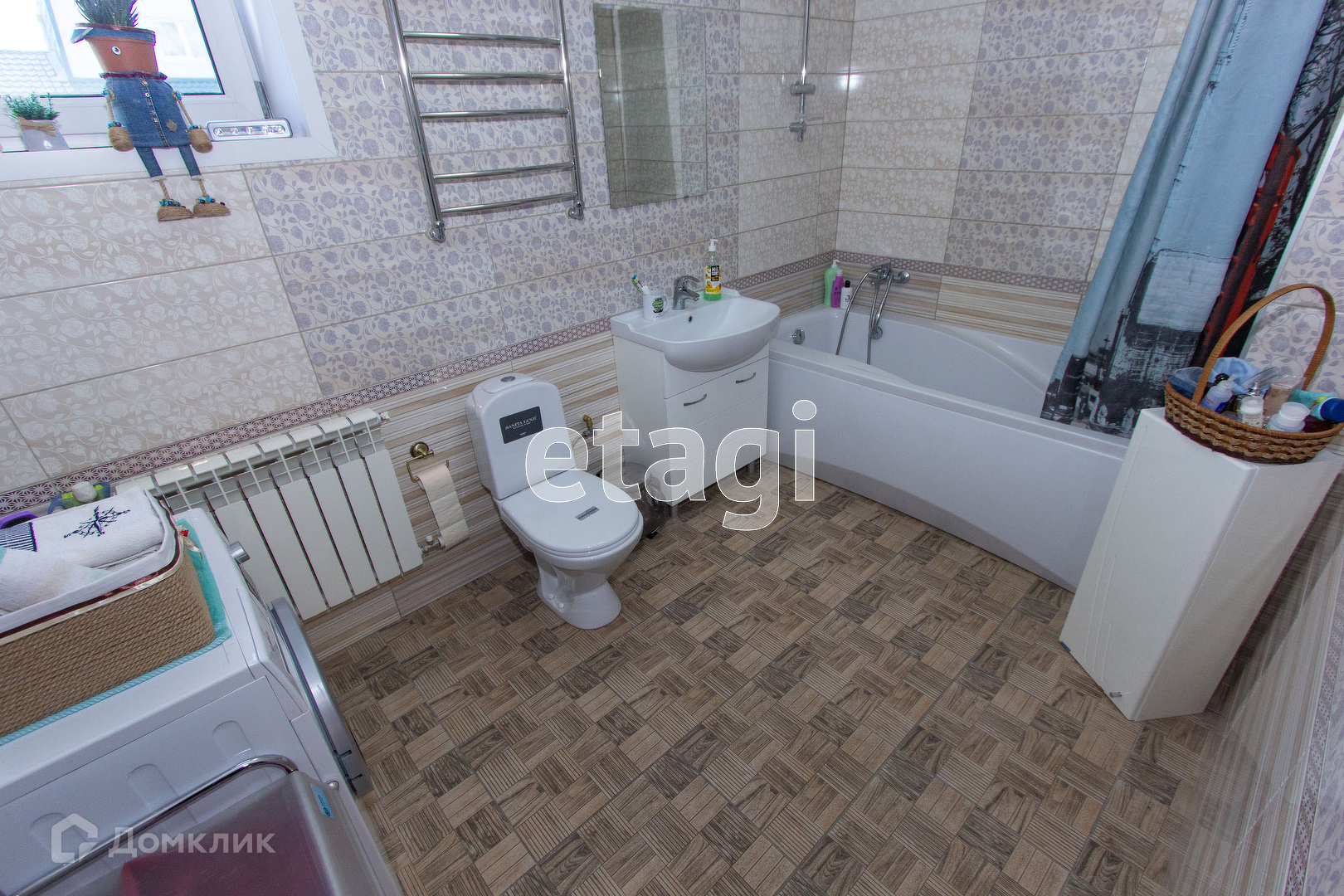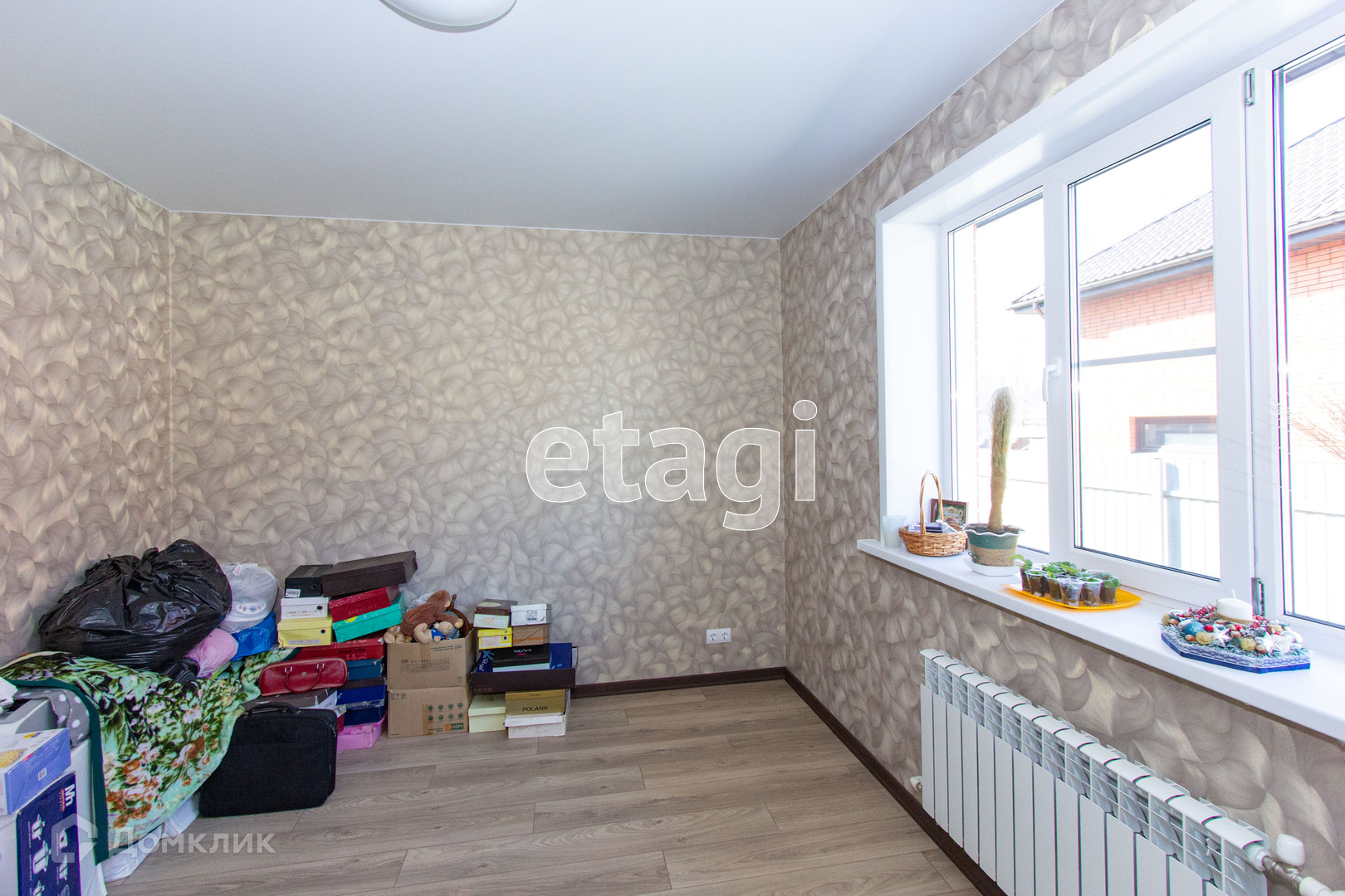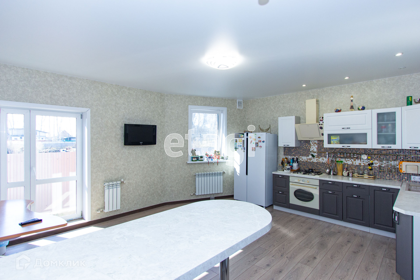 Дом выполнен из газобетона и облицован кирпичом. По всей жилой площади, включая коридоры и кухню оборудован теплый водяной пол.